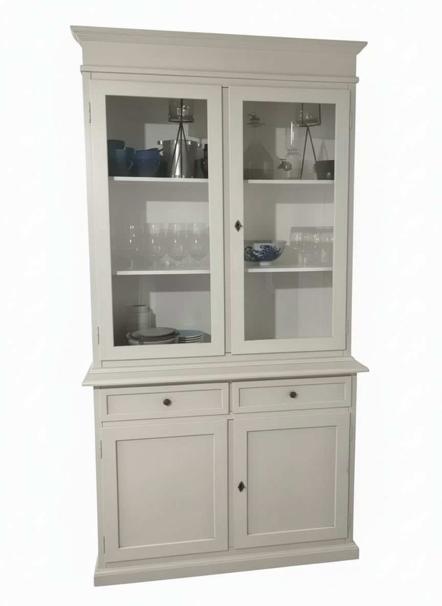 Cristalliera in stile shabby elegante e con proporzioni perfette per qualsiasi stanza, adatta per contenere al suo interno stoviglie : bicchieri , piatti , tazze e servizi da the o caffè risaltando tutto quanto esposto sui ripiani. Elemento d' arredo adatto per salotti e nelle cucine, esteticamente appagante e allo stesso tempo funzionale e spazioso.