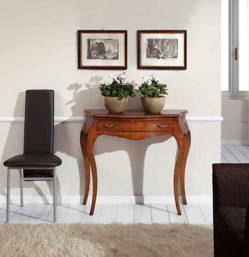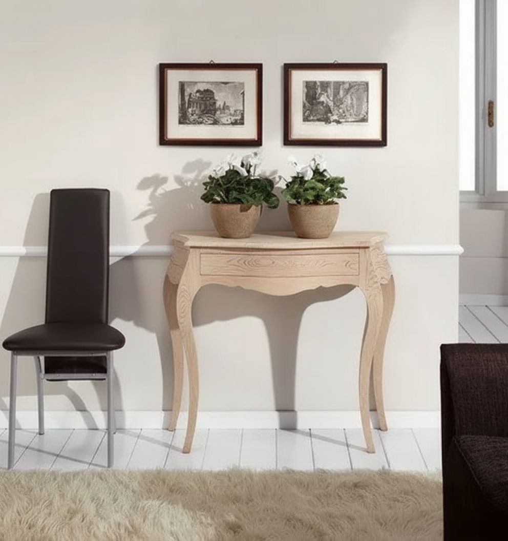 CONSOLLE LEGNO MASSELLO SAGOMATA 1 CASSETTO GREZZO 93X38X80