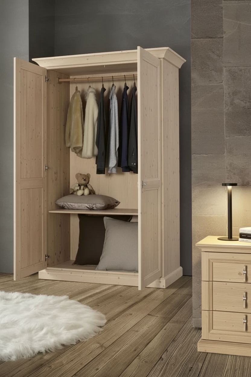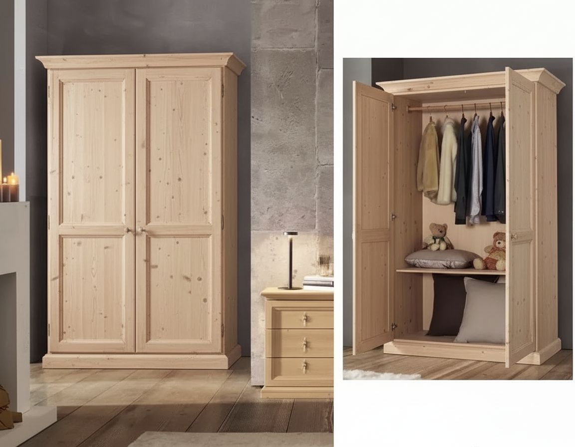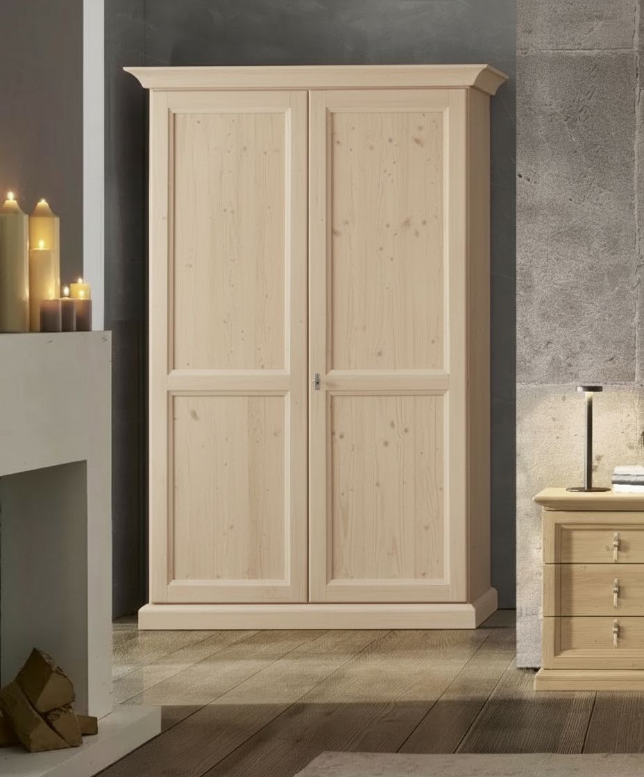 Armadio classico 2 porte cappello dritto legno abete grezzo 140x67x218