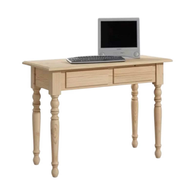 Scrivania 2 cassetti gambe tornite legno grezzo 105x55x80