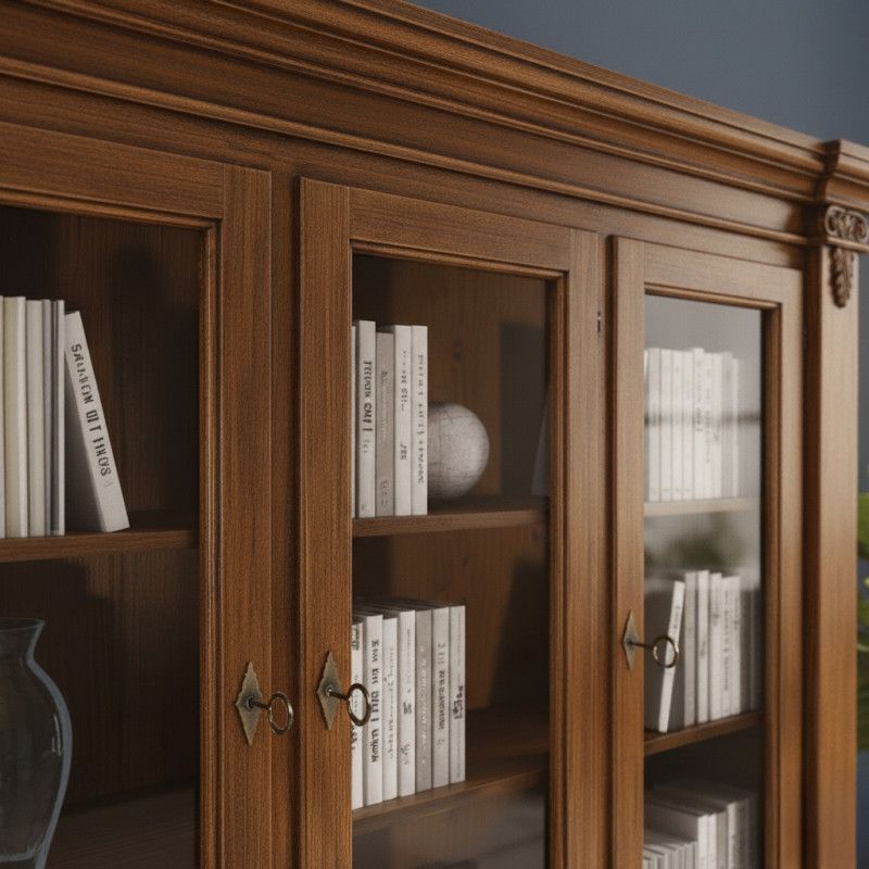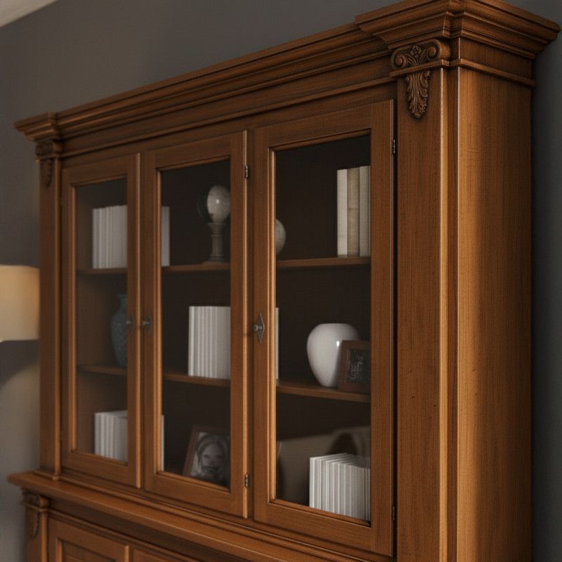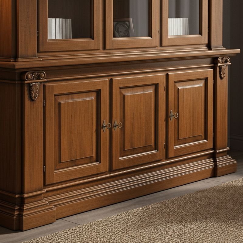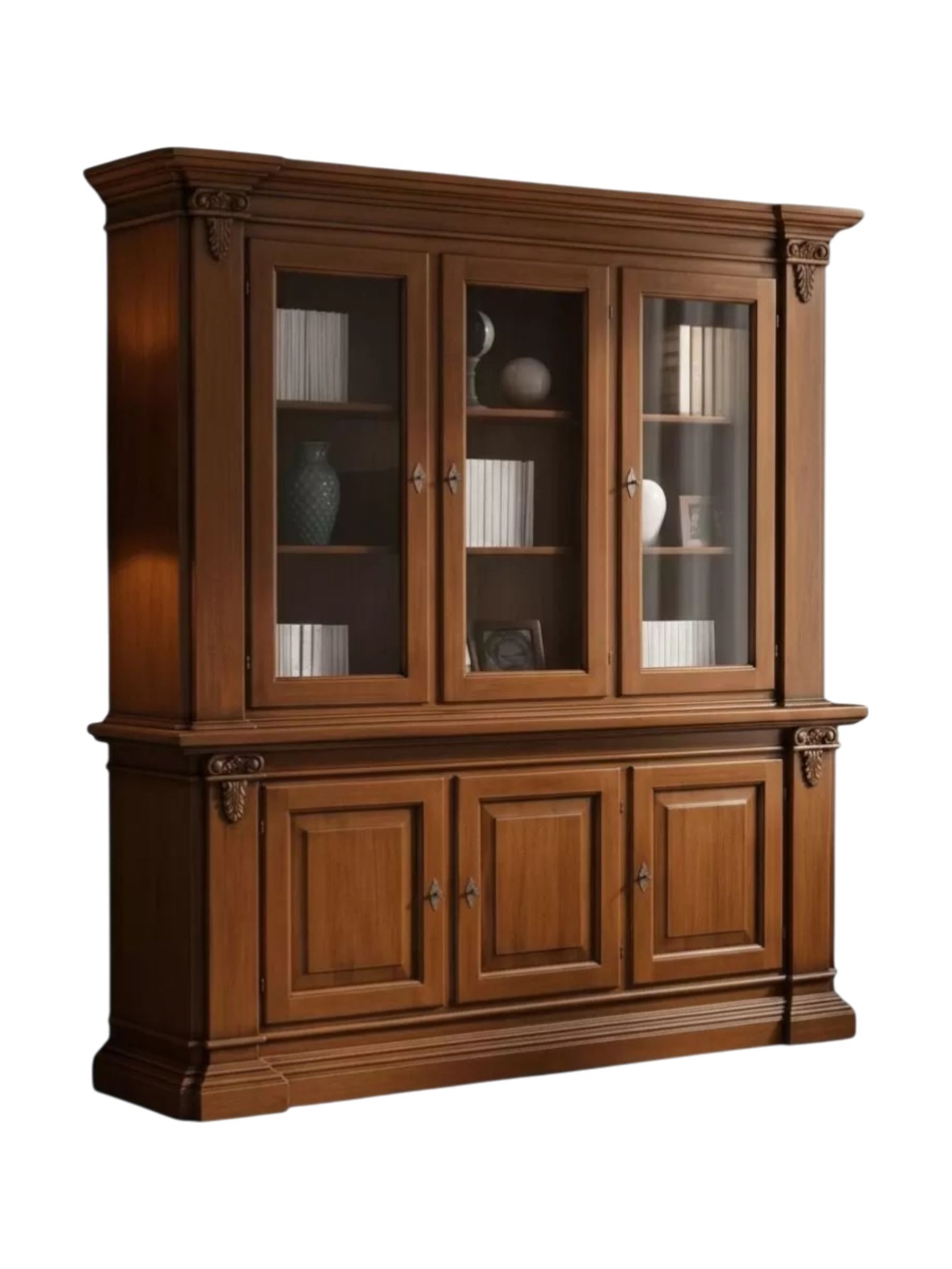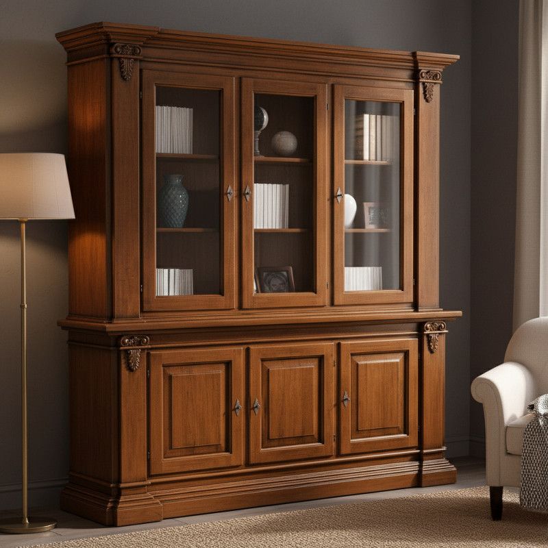 Cristalliera 3 porte classica intagliata legno tinta noce 200x50x224