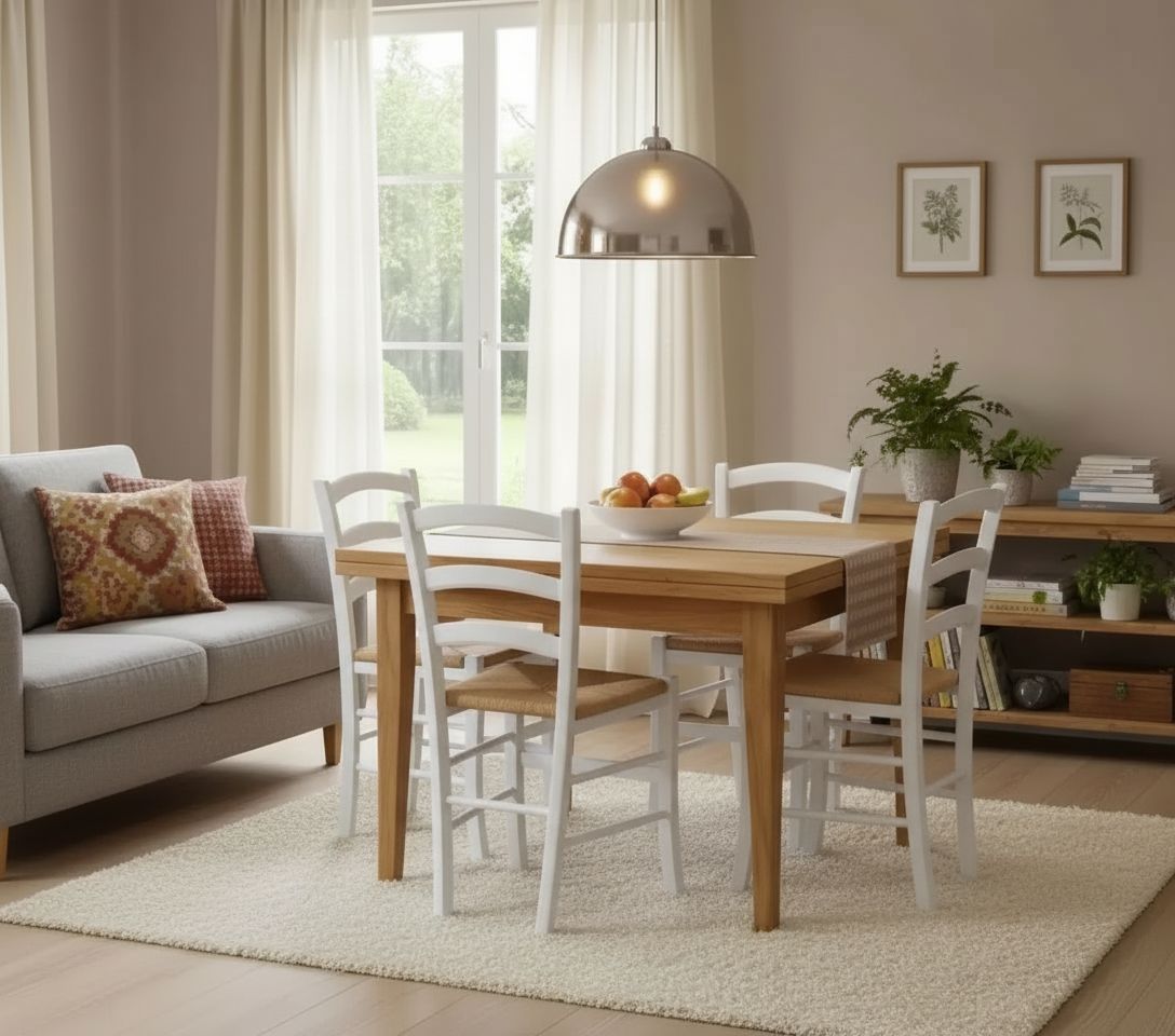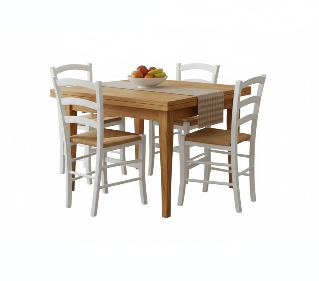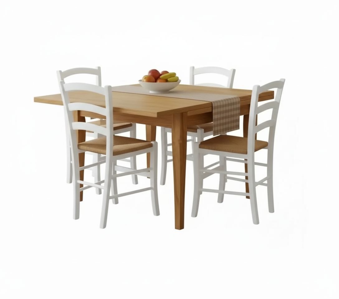 Set tavolo quadrato a libro noce chiaro 90x90 100x100 allungabile con 4 sedie bianche