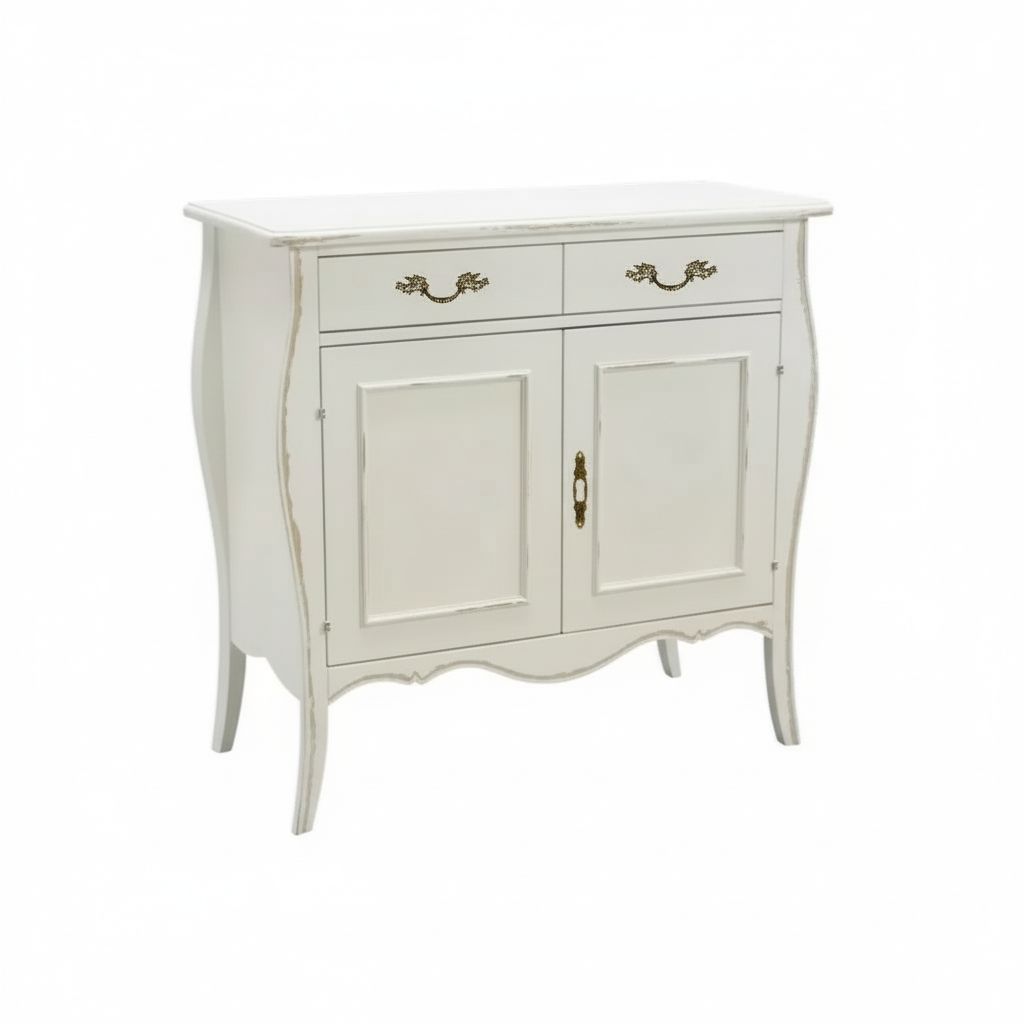 Credenza in stile shabby adatta per riporre stoviglie, strofinacci e tovaglie. Realizzata con uno stile classico per aggiungere un tocco di classe retrò nella zona giorno o in taverna. Elemento d' arredo funzionale e spazioso che non passerà inosservato dagli ospiti all' interno della casa .
