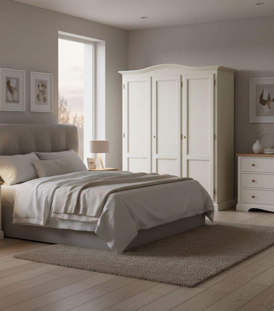 Armadio 3 ante legno shabby avorio anticato 158x56X197