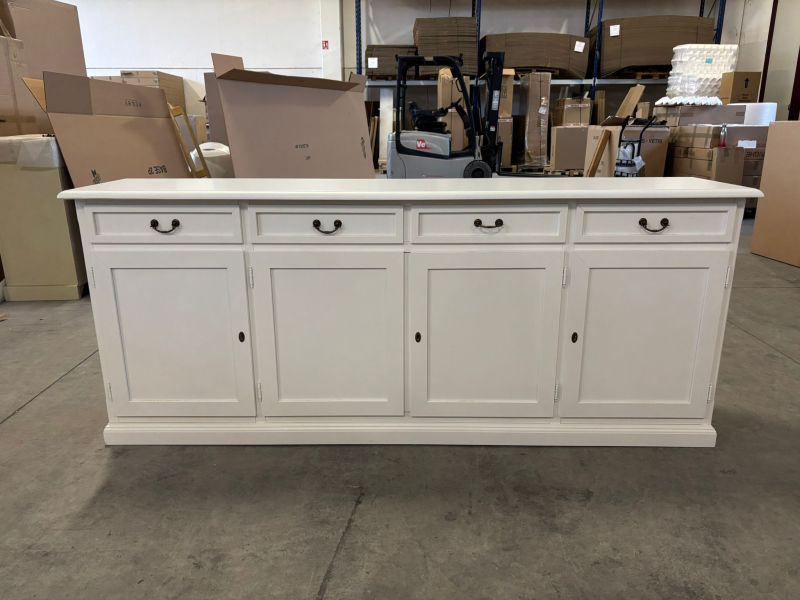 Madia credenza arte povera 4 porte legno bianco maniglie 205x42x85