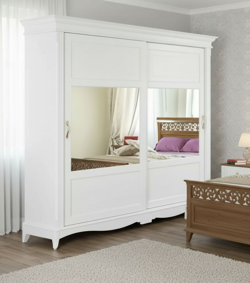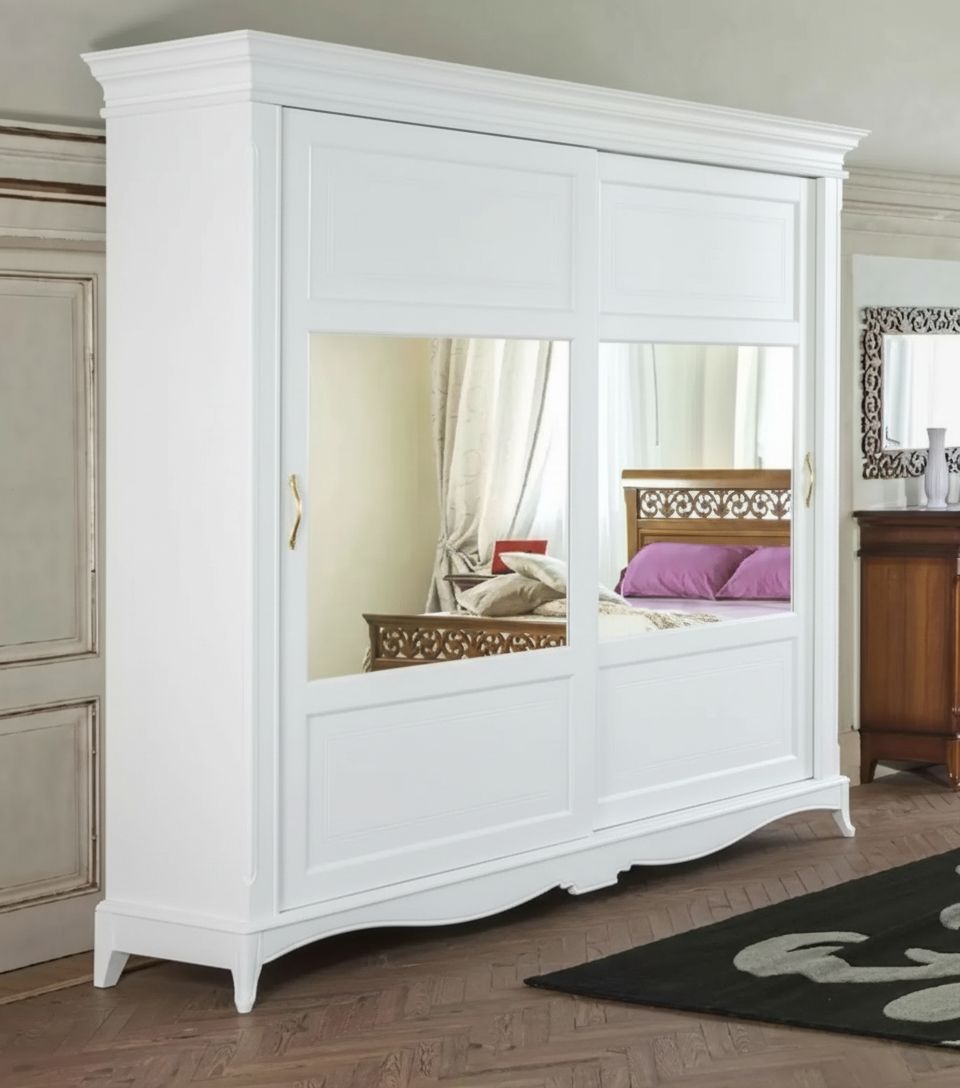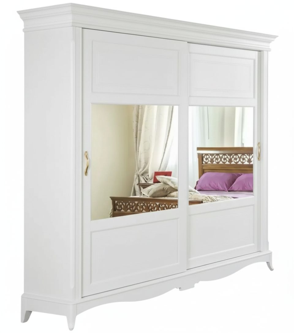 Armadio 2 porte scorrevoli classico legno bianco 273x69x259