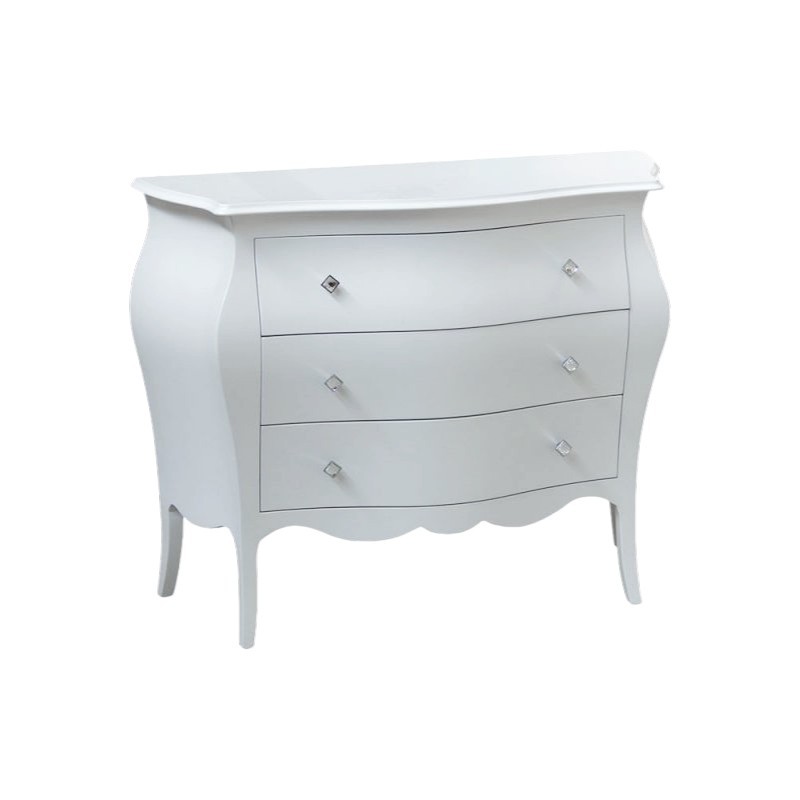 Cassettiera sagomata 3 cassetti legno bianco swarovski 105x42X85