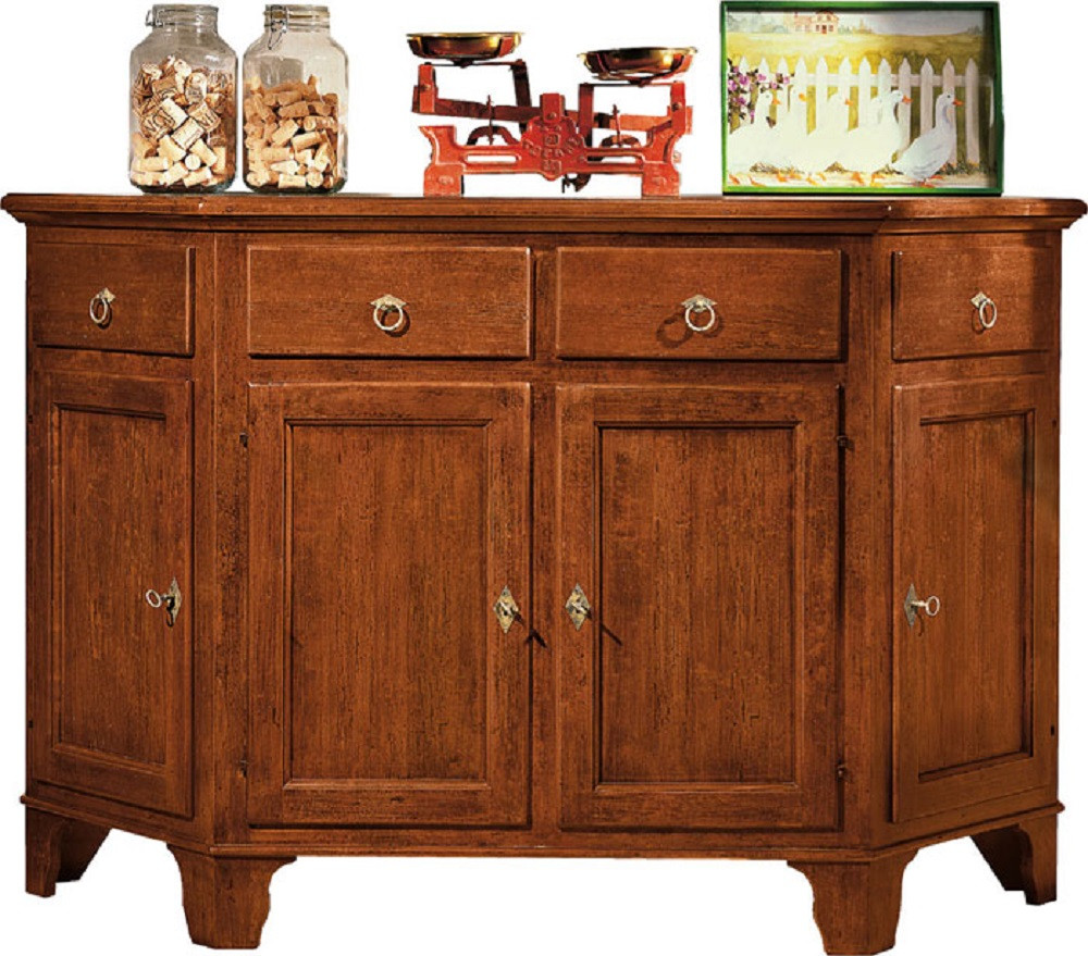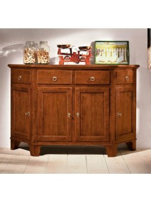 MADIA CREDENZA SCANTONATA IN LEGNO MASSELLO 4 PORTE TINTA NOCE L.158 P.48 H.102 (977)