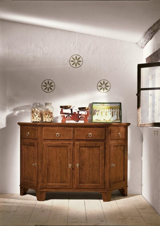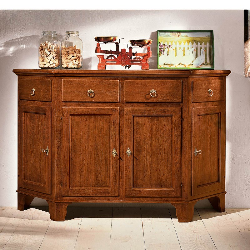 CREDENZA SCANTONATA IN LEGNO MASSELLO 4 PORTE 4 CASSETTI MISURA L.158 P.48 H.102