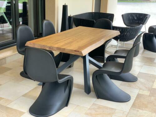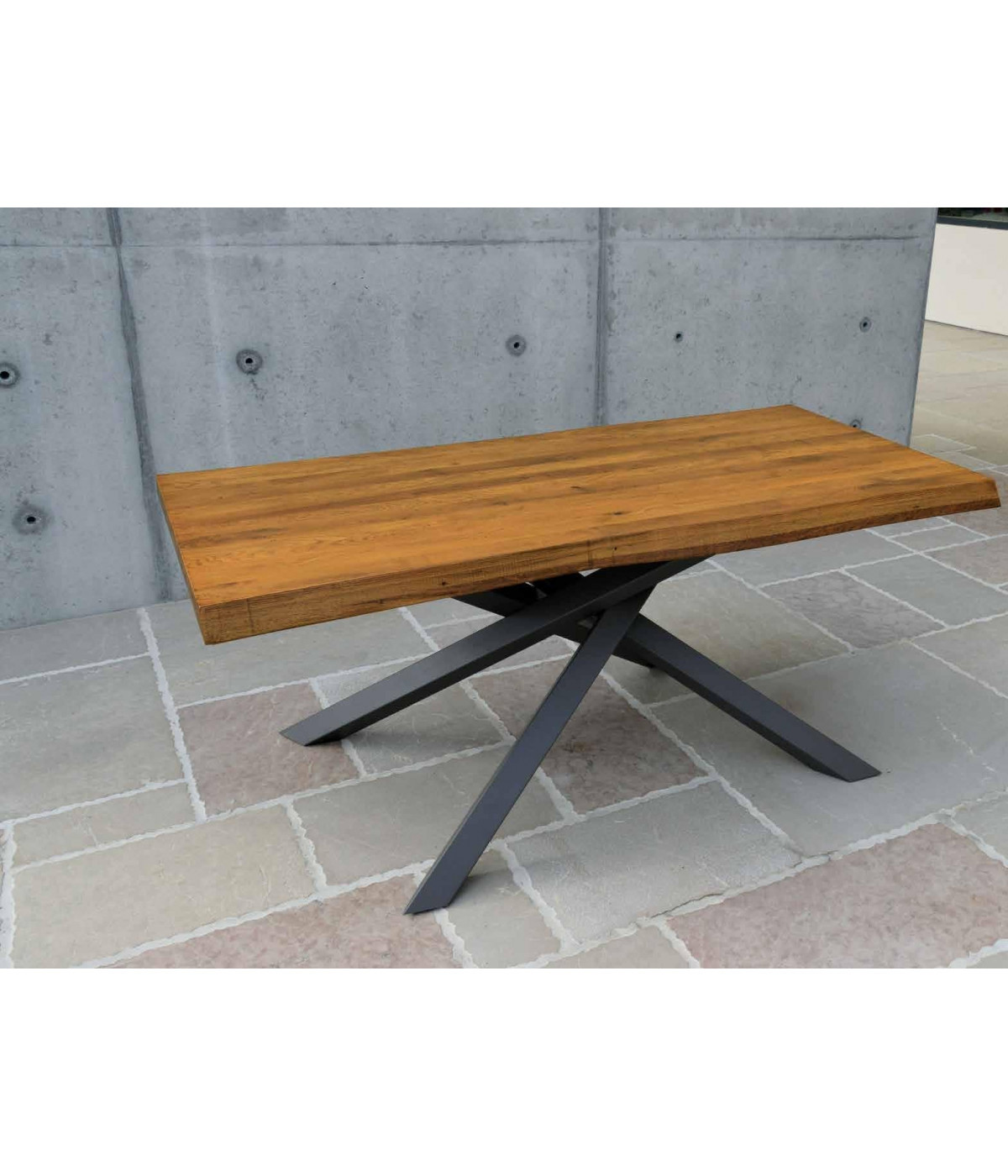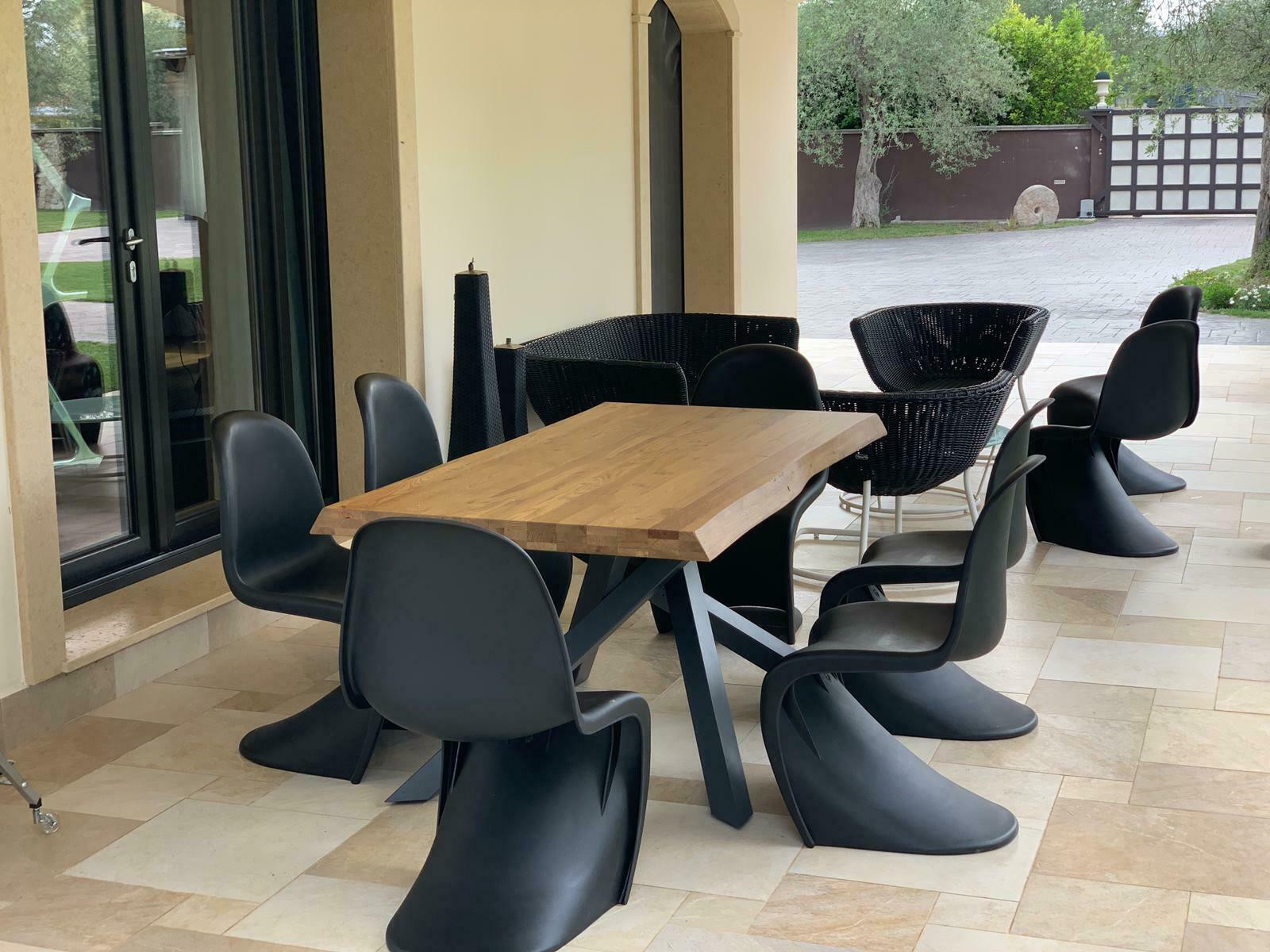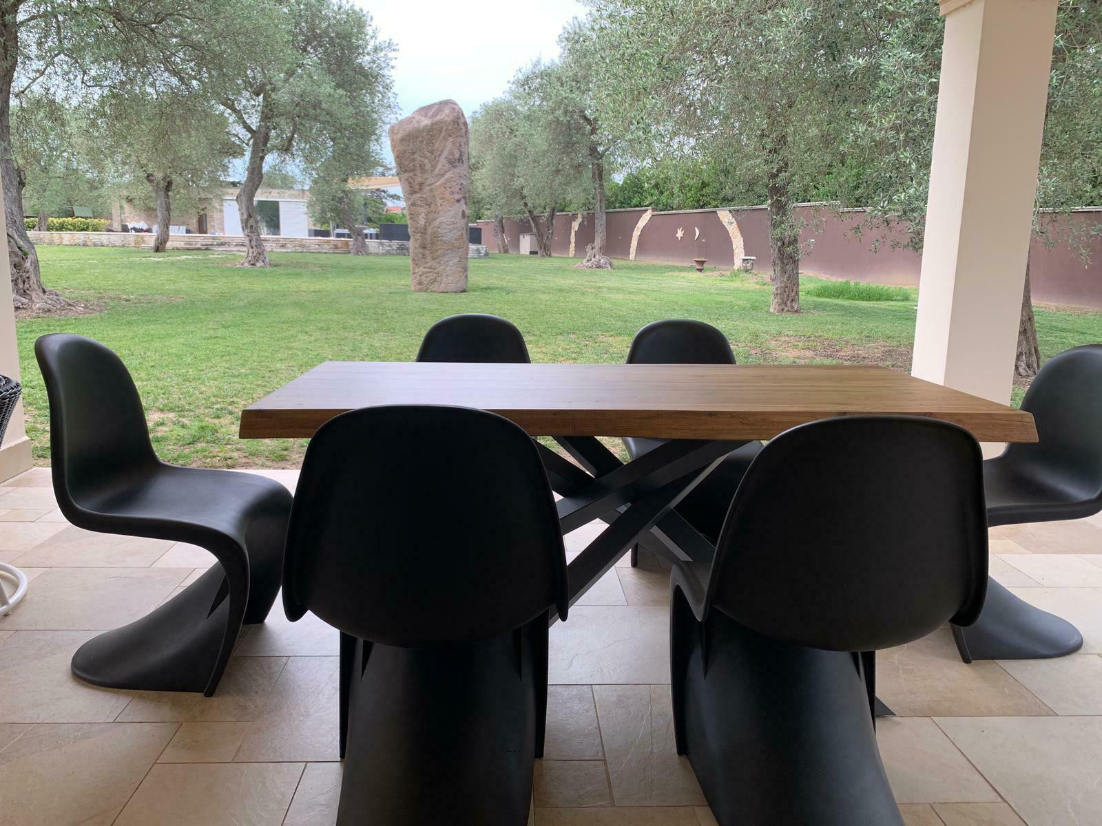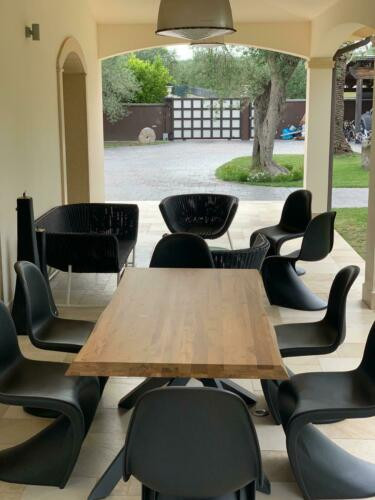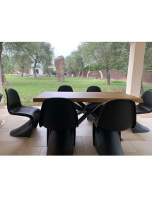 Il tavolo Big Table ha le quattro gambe intrecciate tra di loro che sorreggono il piano
