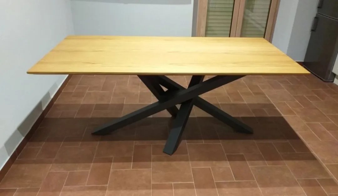 Il tavolo Big Table ha le quattro gambe intrecciate tra di loro che sorreggono il piano