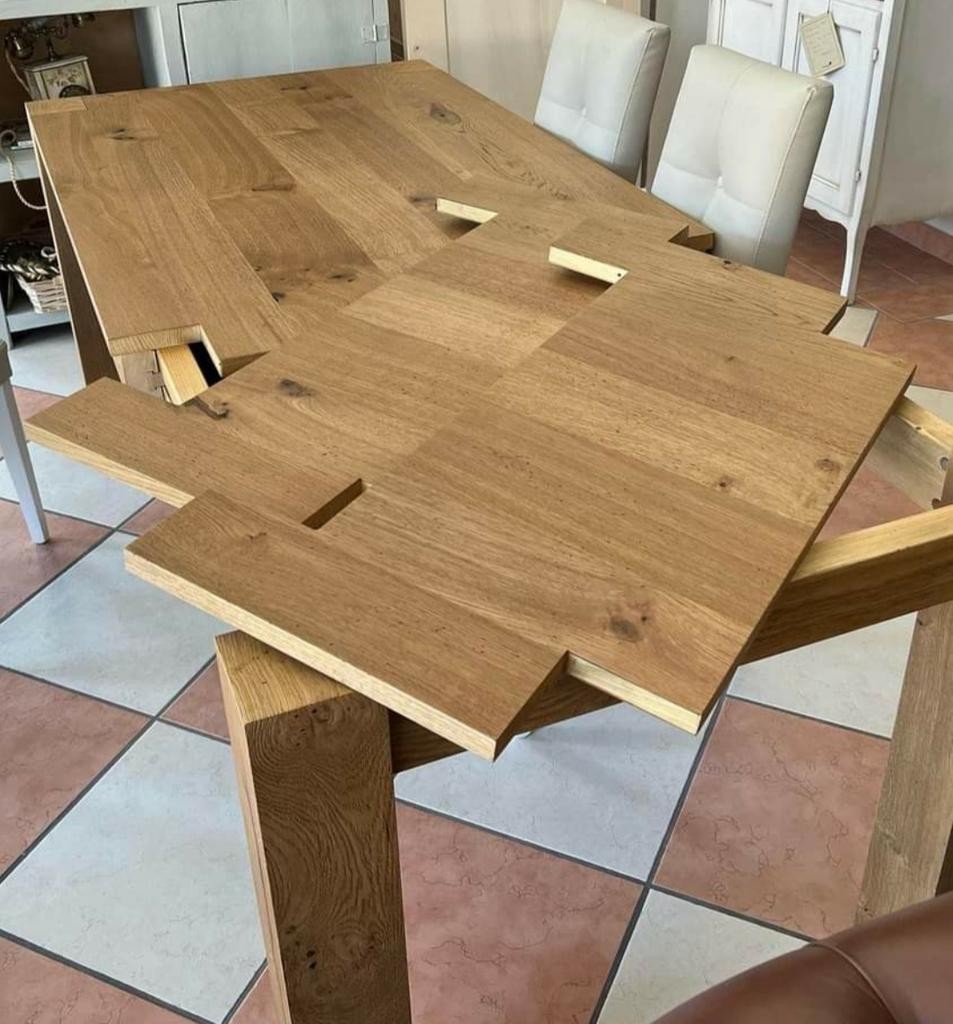 il tavolo ha un contenitore sotto coperchio per deporre le 2 allunghe