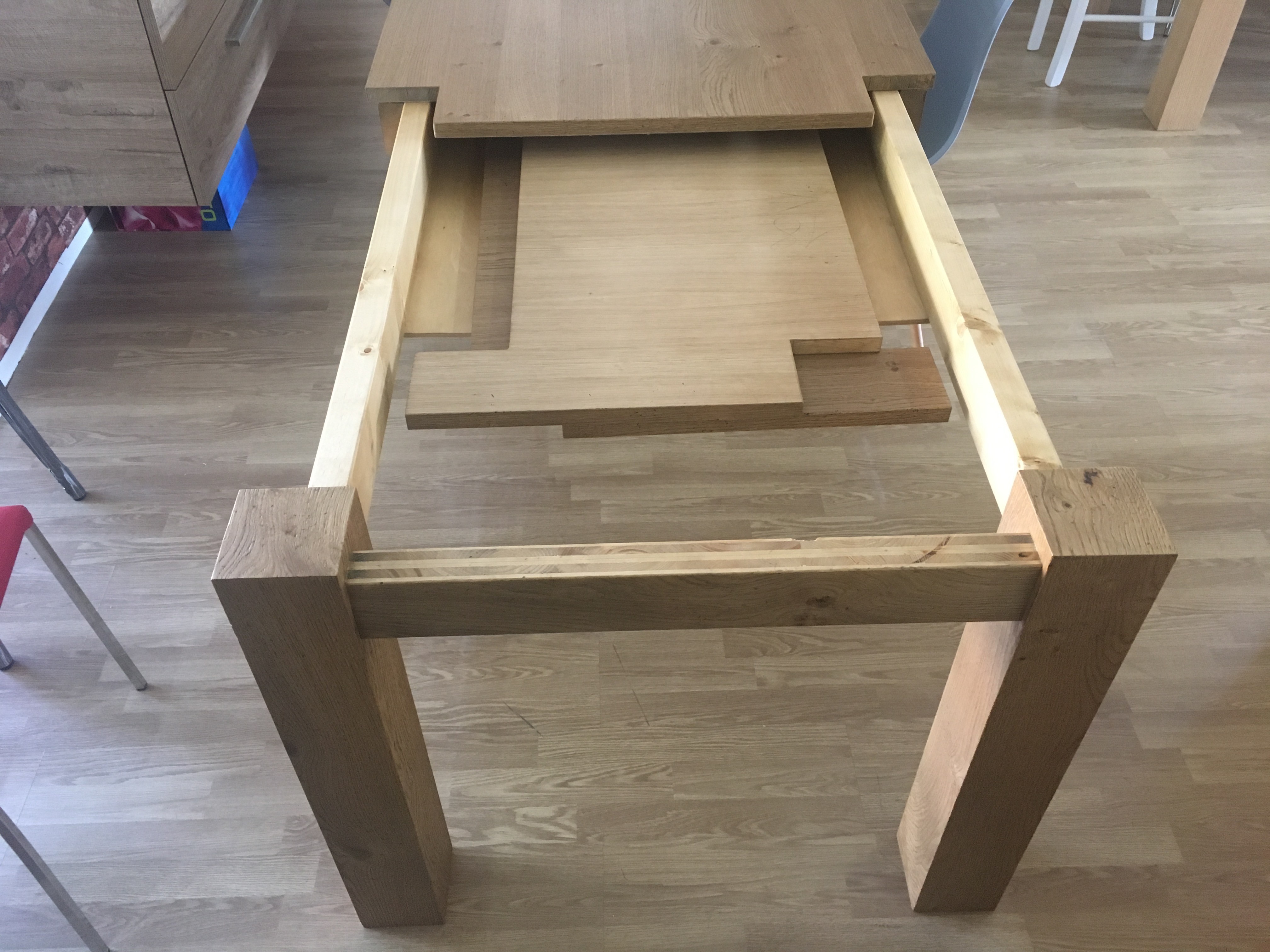 il tavolo ha un contenitore sotto coperchio per deporre le 2 allunghe