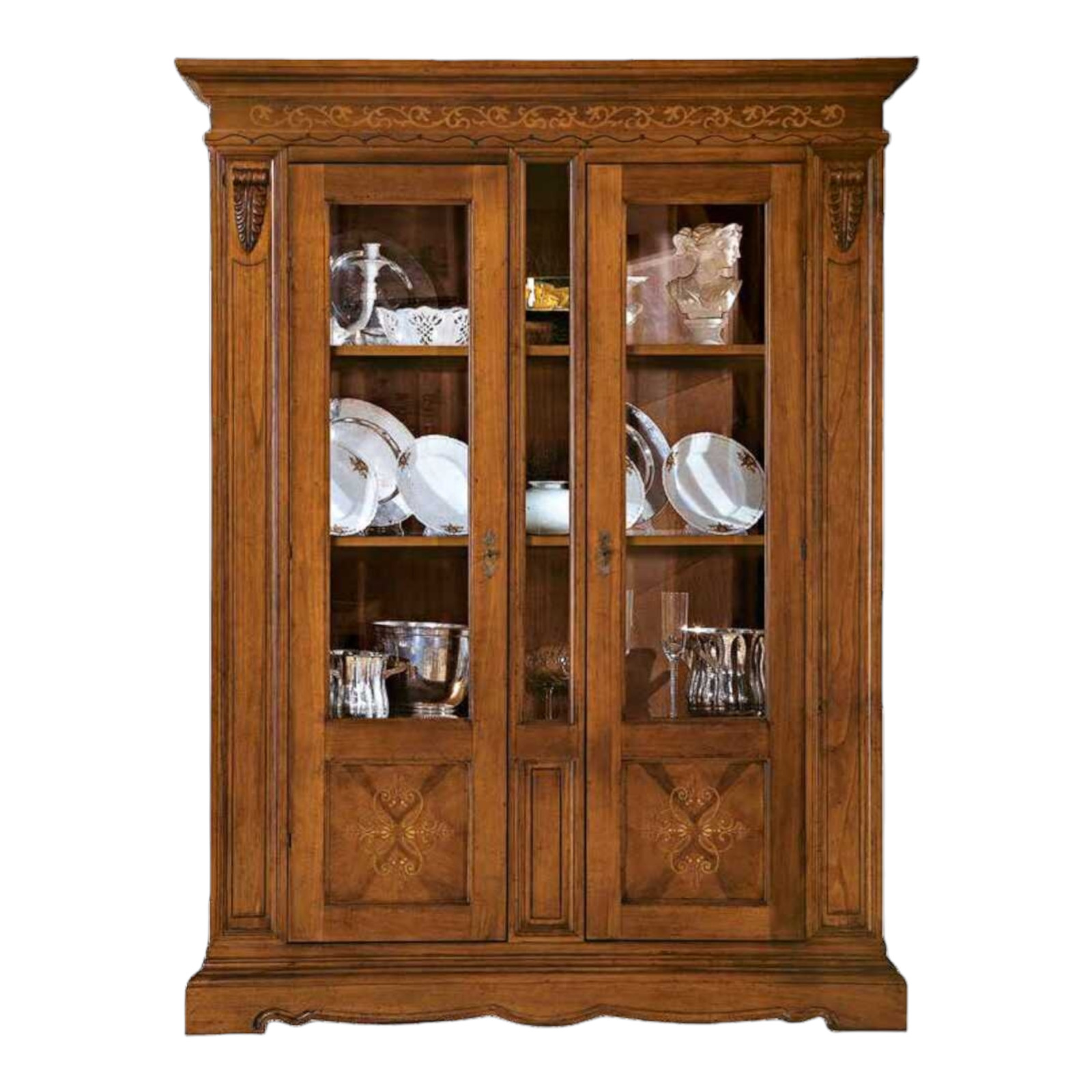 VETRINA 2 ANTE CON INTARSI FINITURA CILIEGIO PATINATO