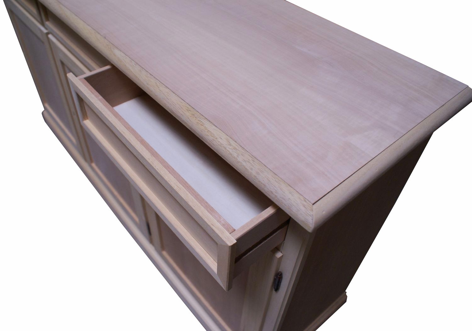 Mobili grezzi non sono rifiniti, consegnati con legno al naturale - non verniciato - e privi di maniglie, pomoli o chiavi e vetri.