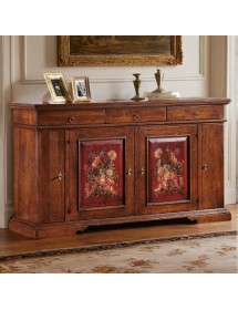 Madia Credenza in legno 4 porte noce antico con decori 201x 52 x114 (1420)