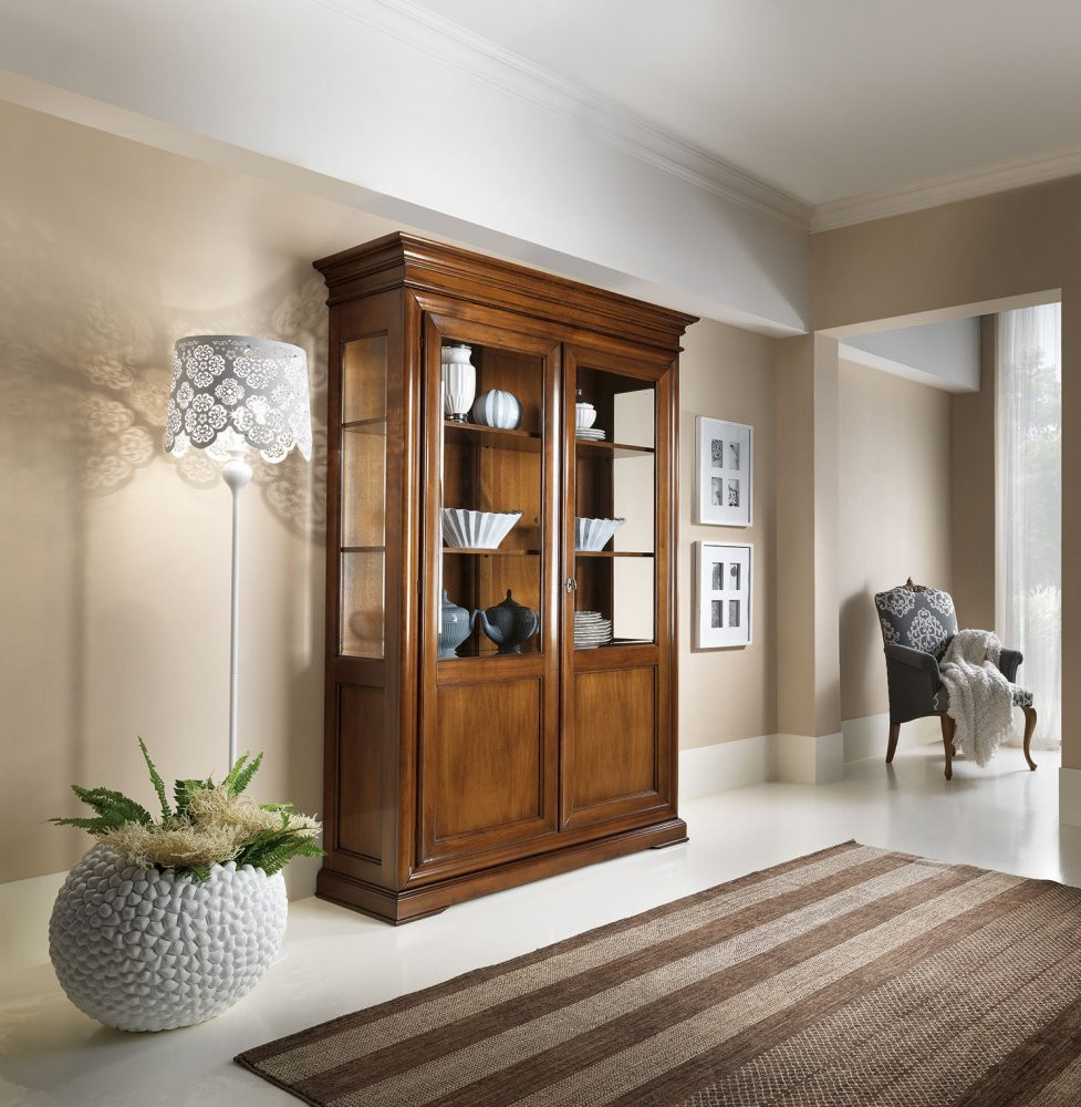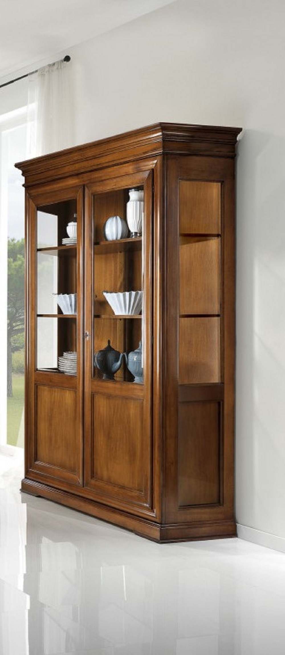VETRINA 2 PORTE IN LEGNO TINTA NOCE L.145 x P.50 H.215