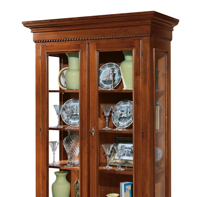 VETRINA 2 PORTE 2 CASSETTI IN LEGNO TINTA NOCE L.125 x P.48 H.196 (606)