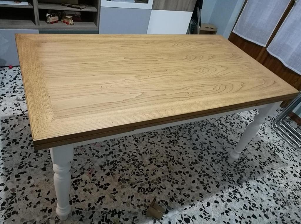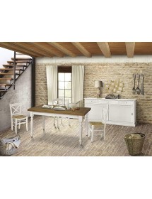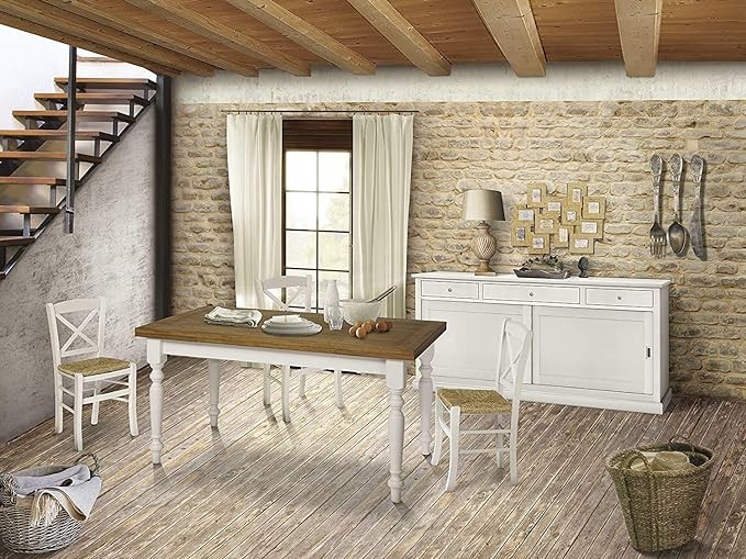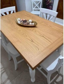 Tavolo da pranzo legno Allungabile country Chic Piano Rovere e Bianco 140X85 h.78 (716)