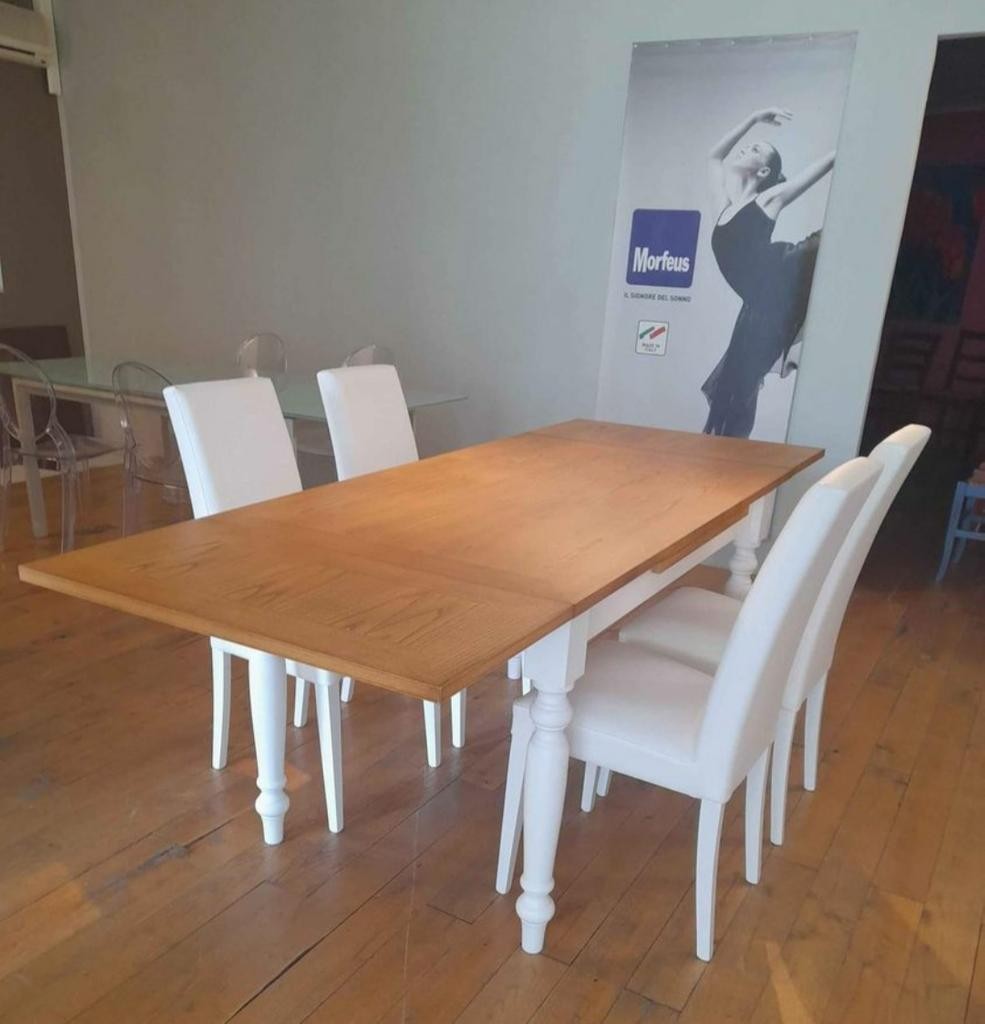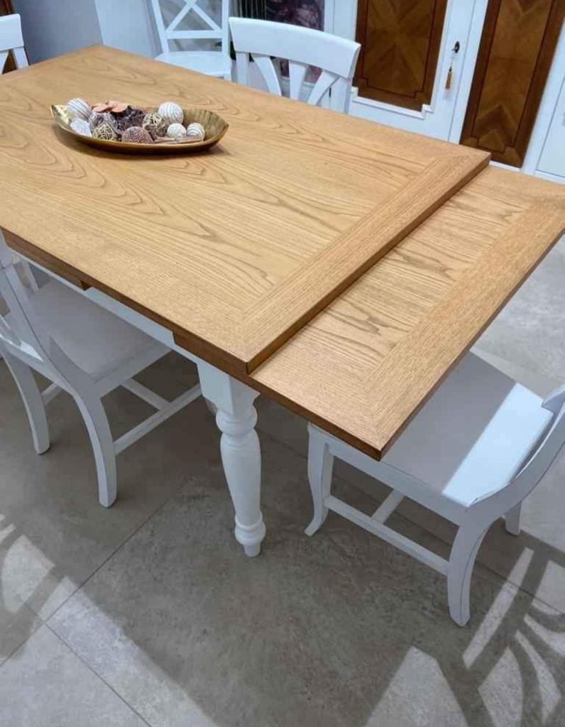 TAVOLO ALLUNGABILE SHABBY GAMBE TORNITE LACCATO LEGNO NATURALE 140X85