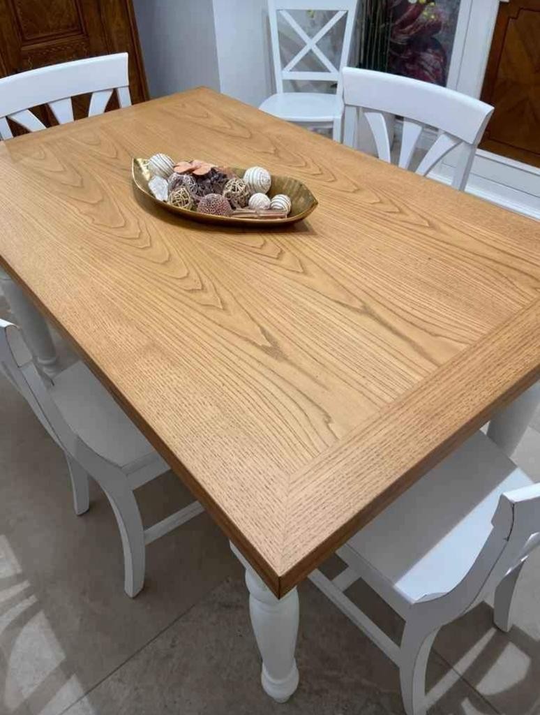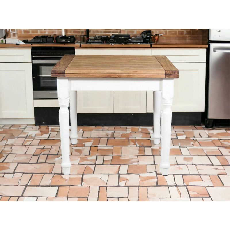 Tavolo da pranzo legno Allungabile country Chic Piano Rovere e Bianco 90x90 LIBRO (717)