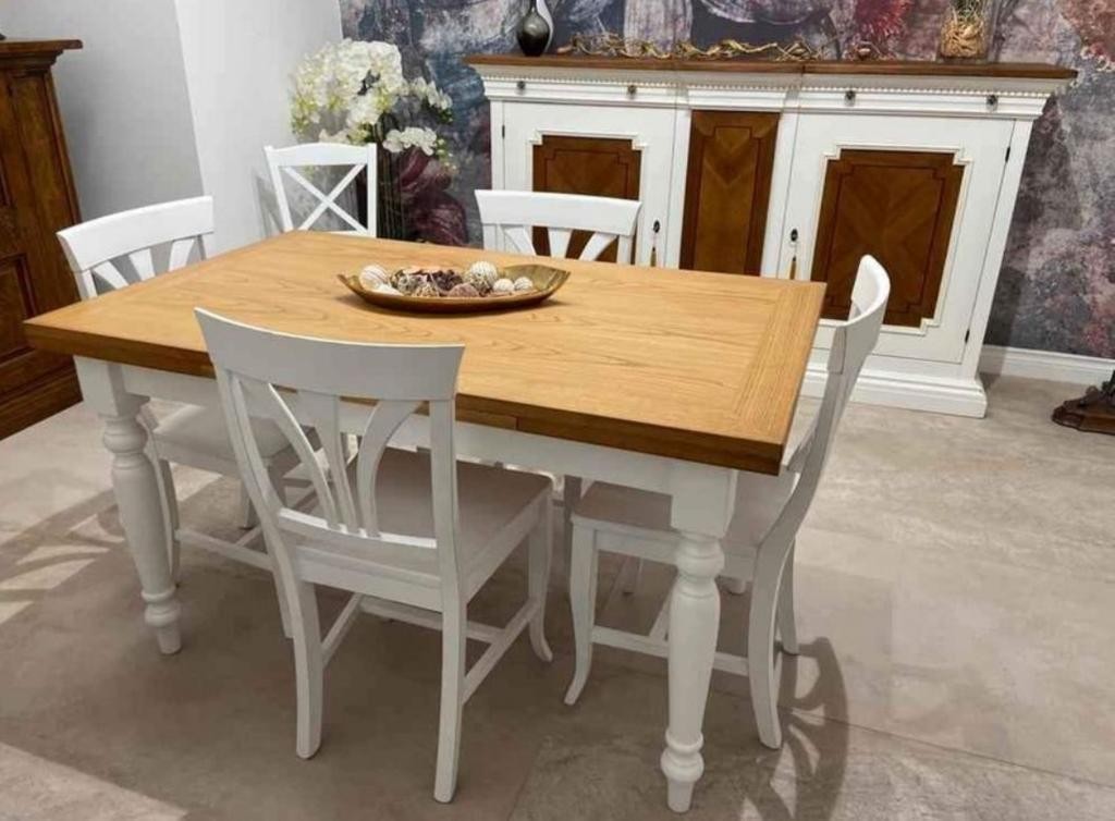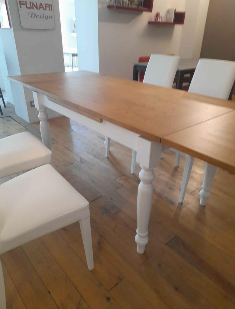 TAVOLO ALLUNGABILE SHABBY GAMBE TORNITE LACCATO LEGNO NATURALE 90x90 libro