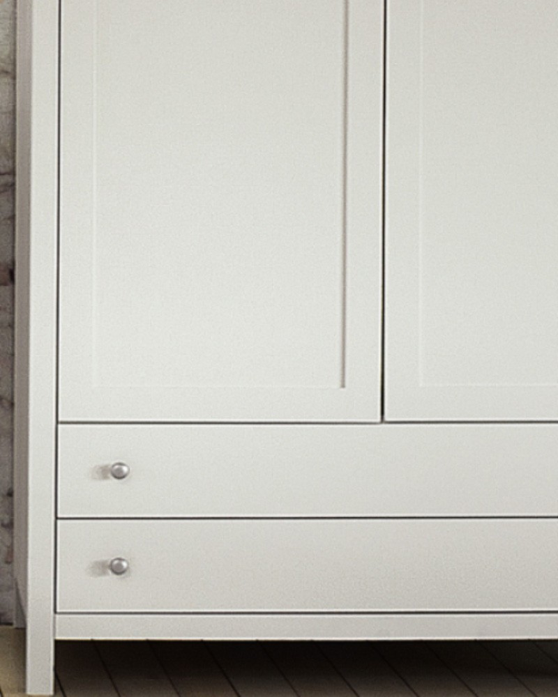 Con 2 ante, 2 cassetti e 1 palo appendiabiti, è perfetto per organizzare giacche, camicie, cappotti, vestiti lunghi, biancheria e accessori, mantenendo tutto in ordine con stile.