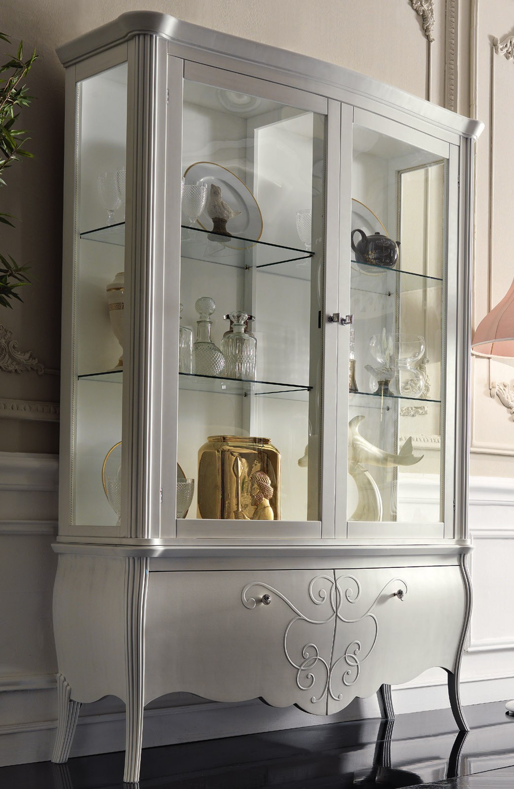 Vetrina a 2 cassetti e 2 porte con rilievo sulle porte