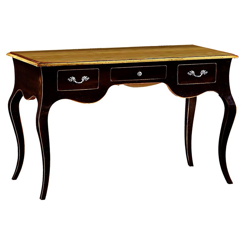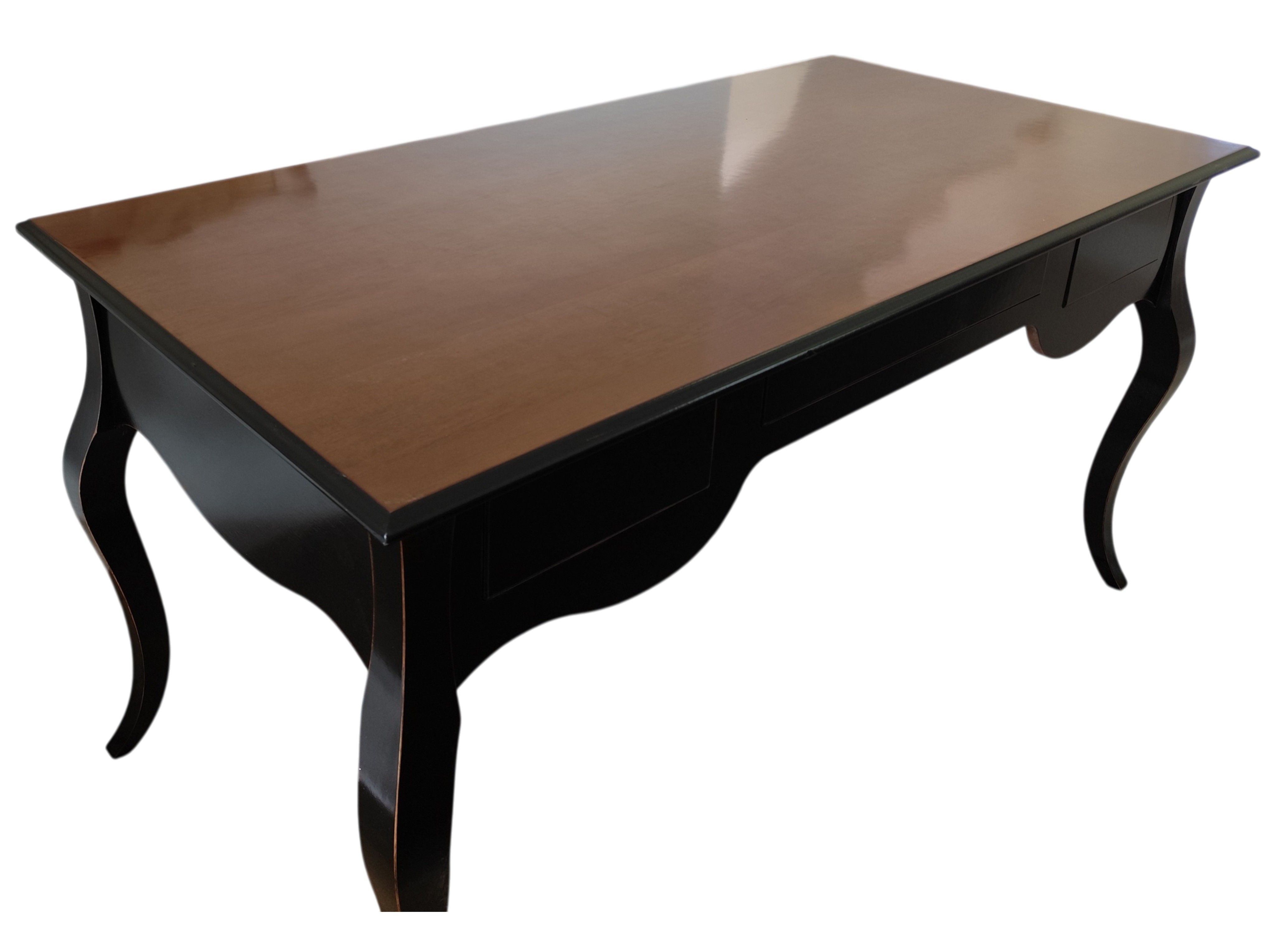 SCRIVANIA LUIGI XV ELEGANTE LACCATA NERA PIANO NATURALE 150x75x80