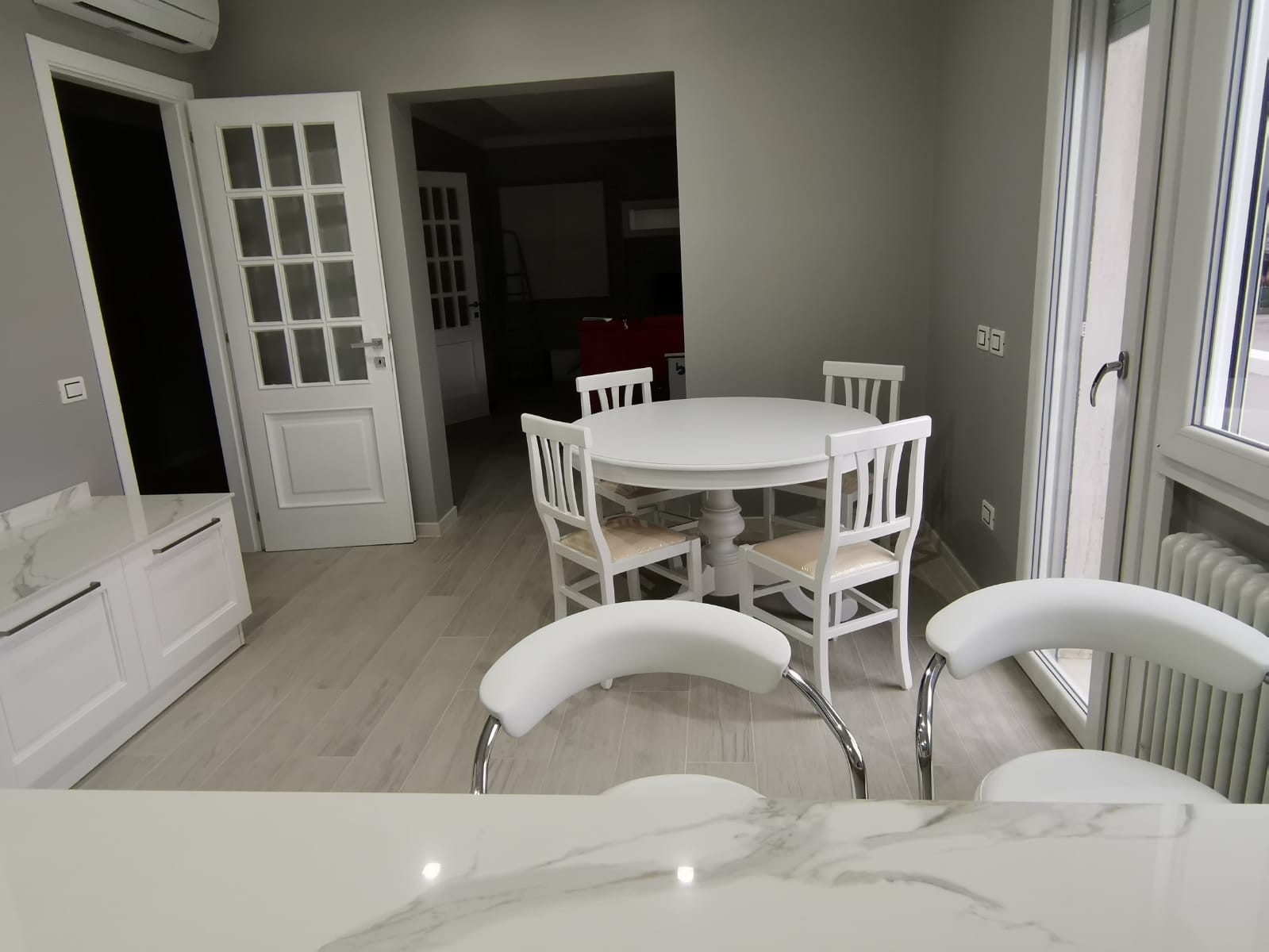 TAVOLO ARTE POVERA ROTONDO COLORE BIANCO OPACO D.100, 1 ALLUNGA 40 CENTIMETRI (1468)