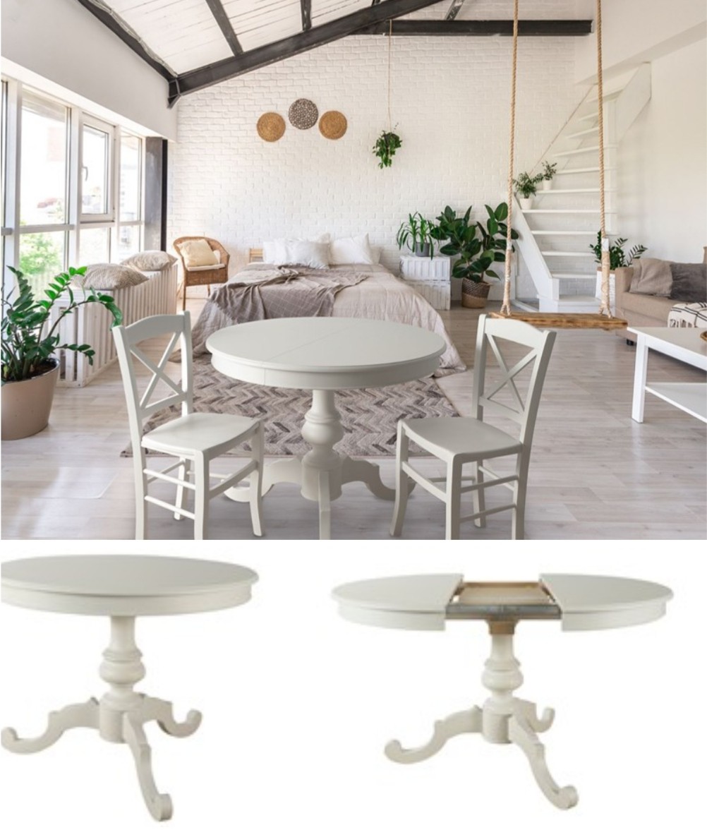 TAVOLO LACCATO SHABBY TONDO ALLUNGABILE 100