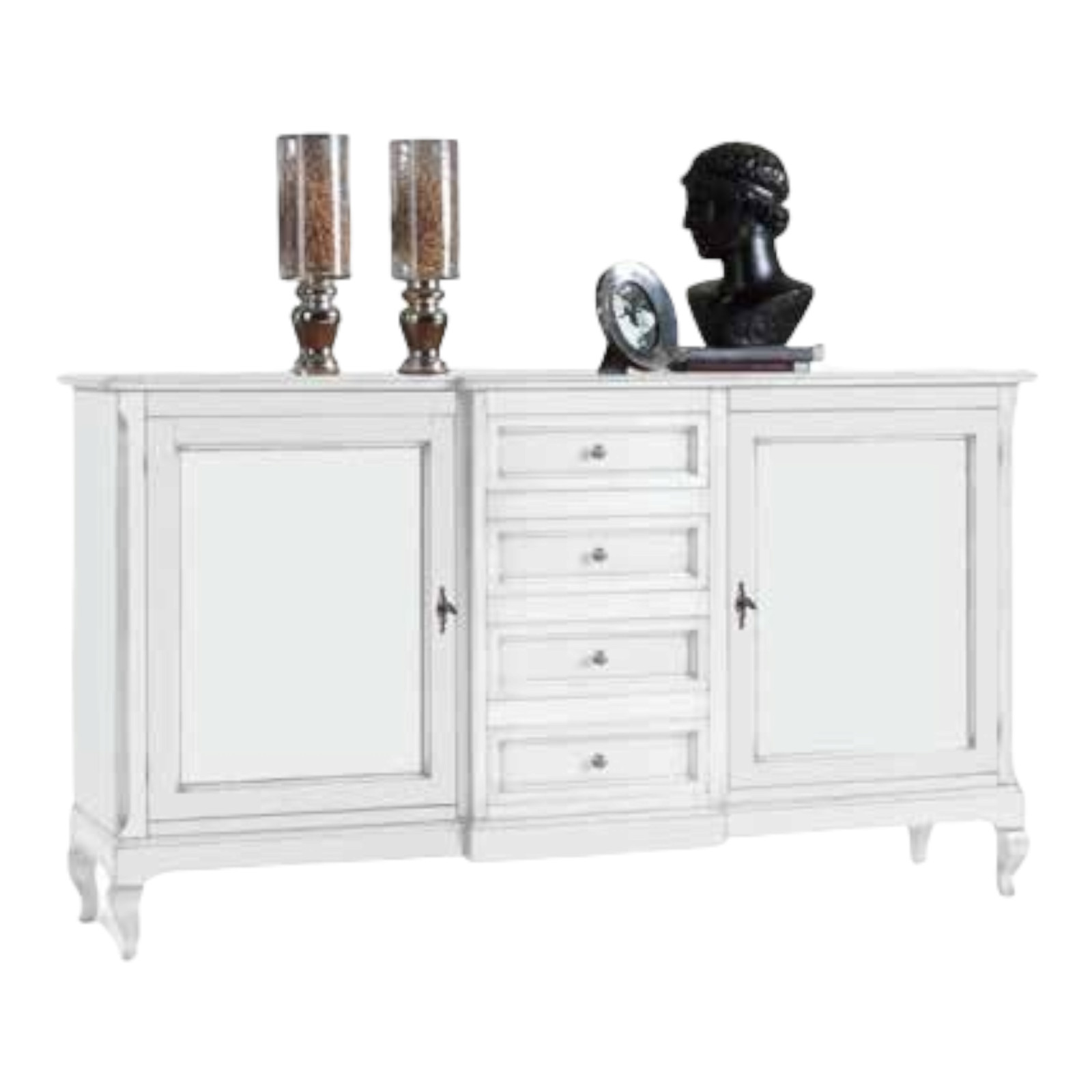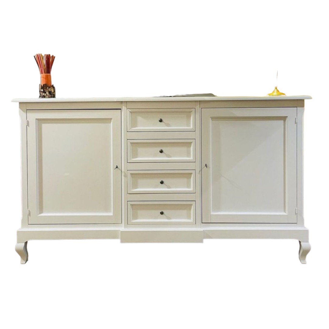 CREDENZA 2 ANTE 4 CASSETTI BIANCO