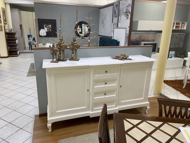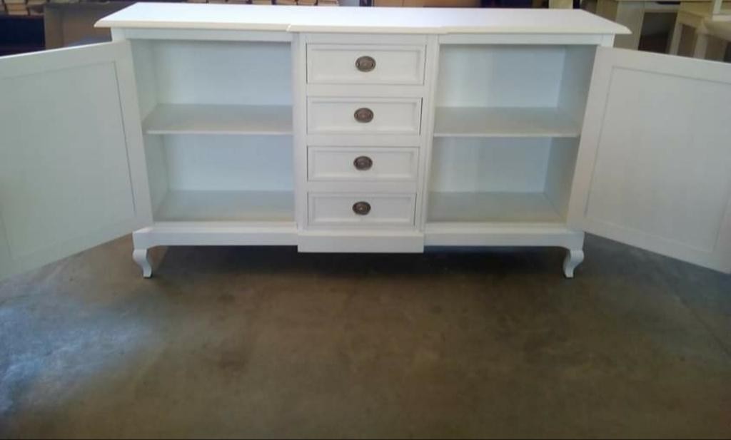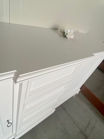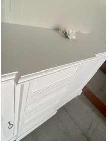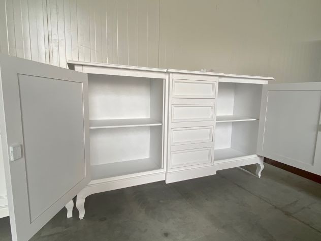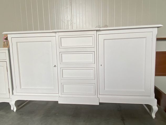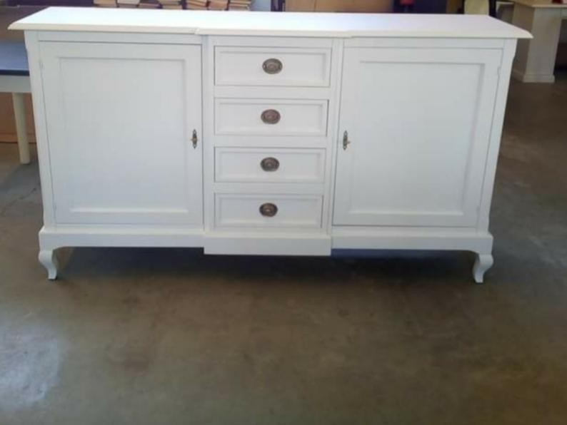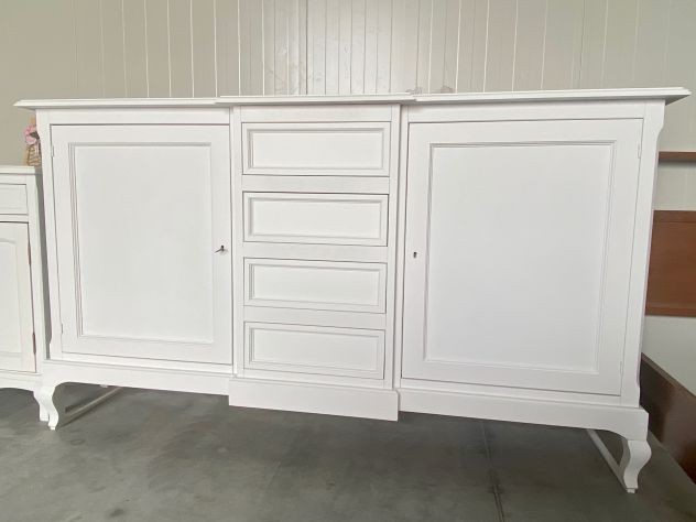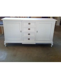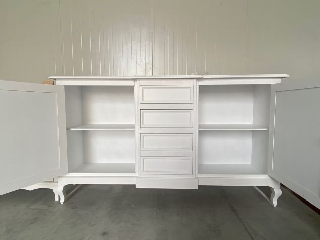 DESCRIZIONE : Credenza in arte povera laccata Bianco Opaco. La credenza ha 2 ante con chiusura e 4 cassetti,il mobile è caratterizzato dal corpo centrale sporgente e dalle gambe sagomate che rendono il pezzo elegante.
