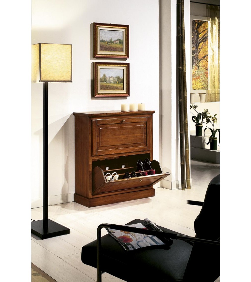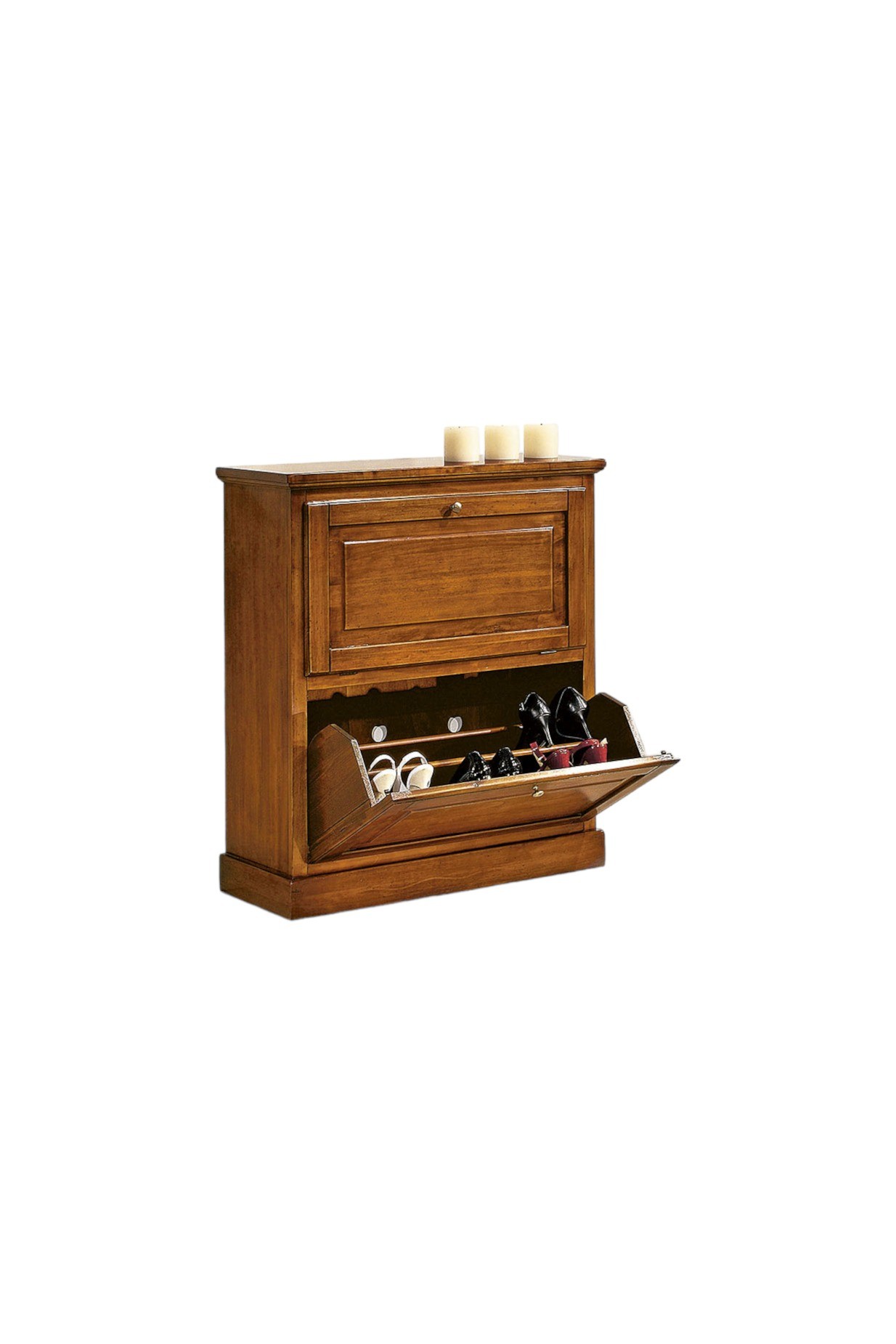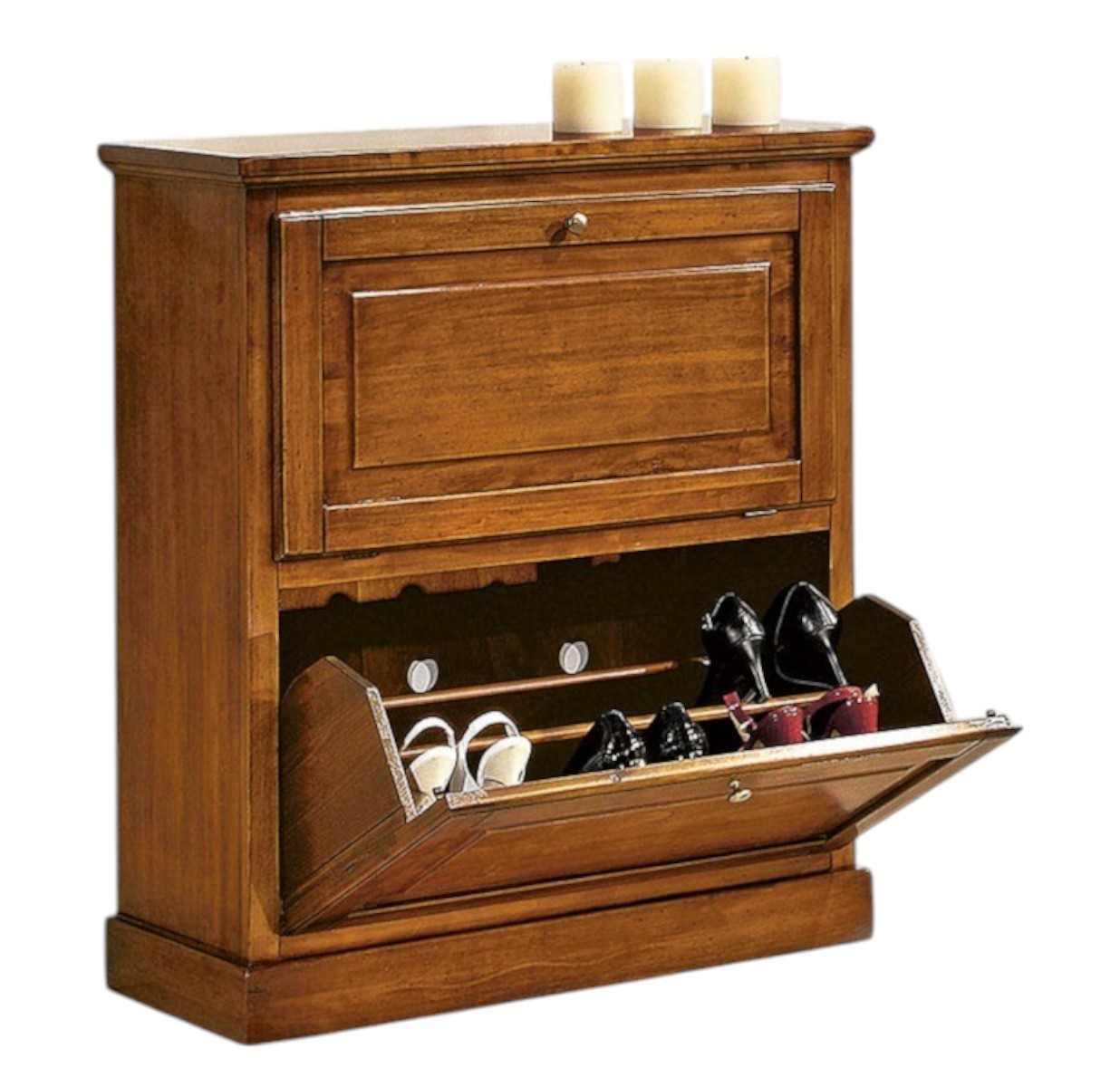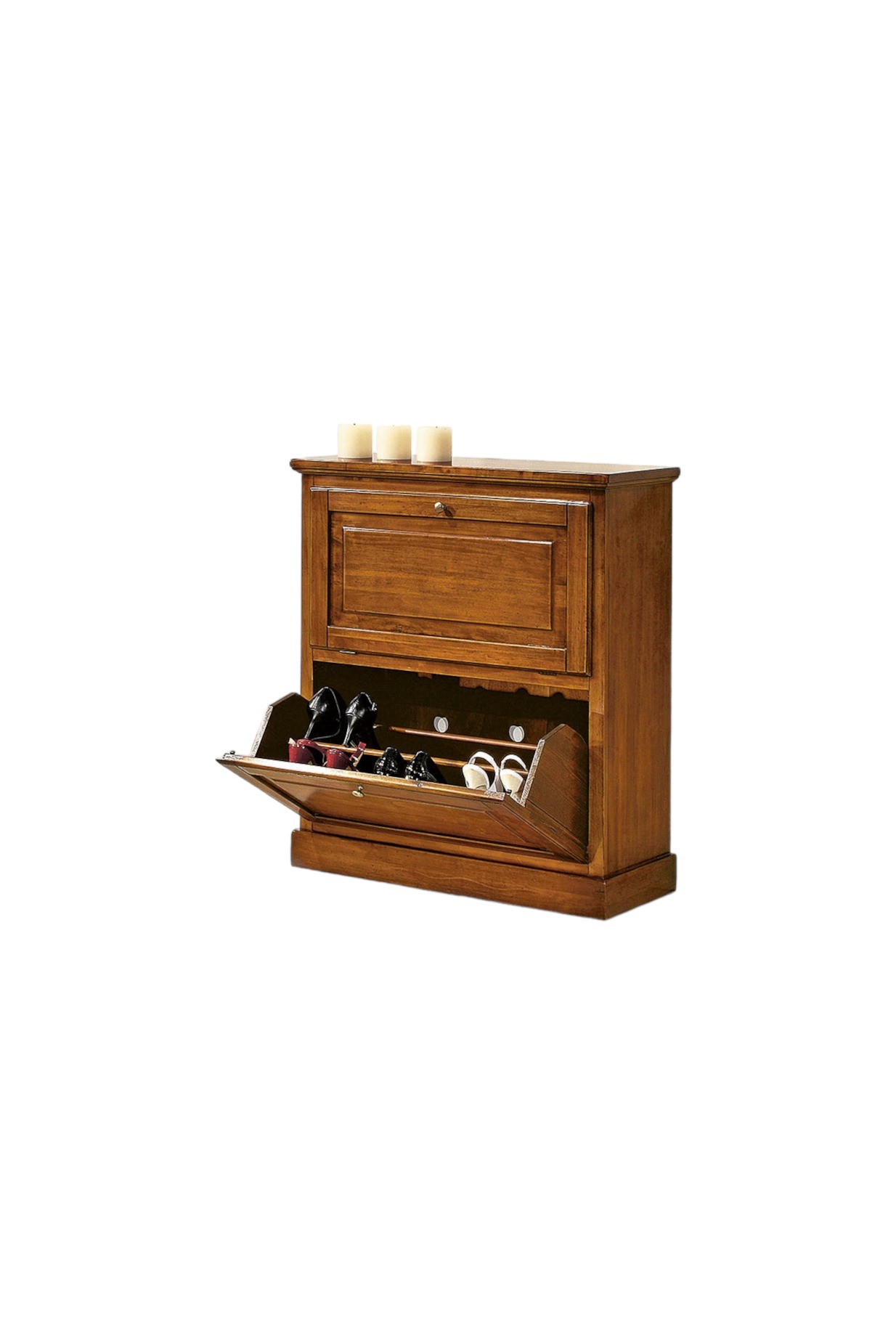 Scarpiera a 2 ribalte decorata con finitura noce.