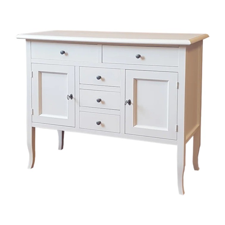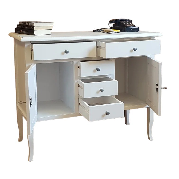 Con i suoi cinque cassetti e le due ante laterali rappresenta un’ottima soluzione contenitiva per organizzare e tenere ordinati gli ambienti più frequentati della casa, come il soggiorno e la cucina.