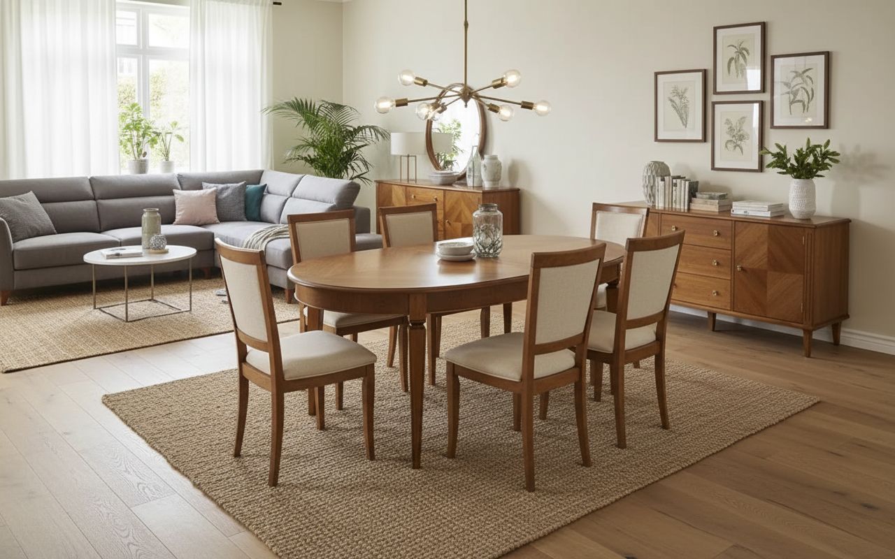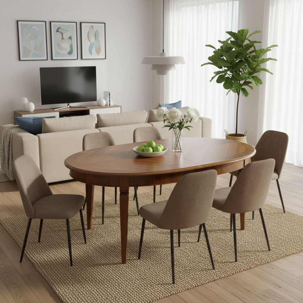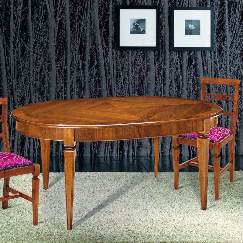 TAVOLO OVALE ALLUNGABILE IN LEGNO MASSELLO DI NOCE L.170 P.110 H.78