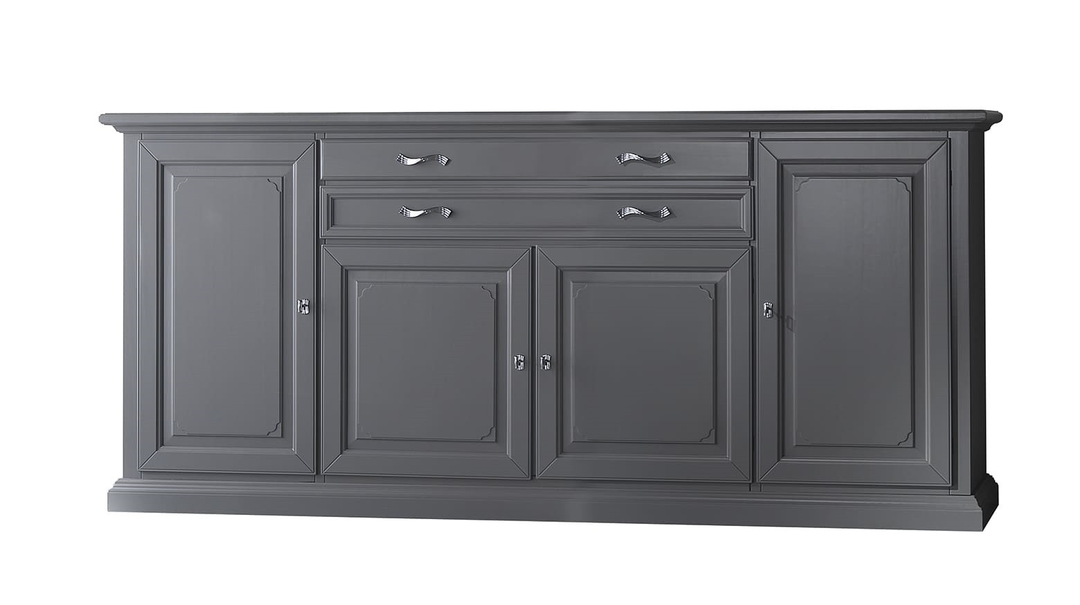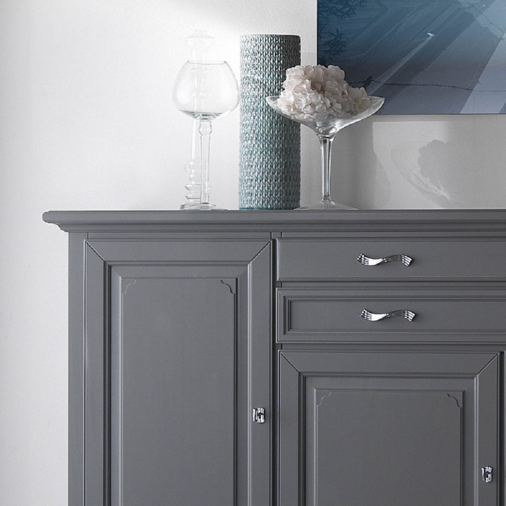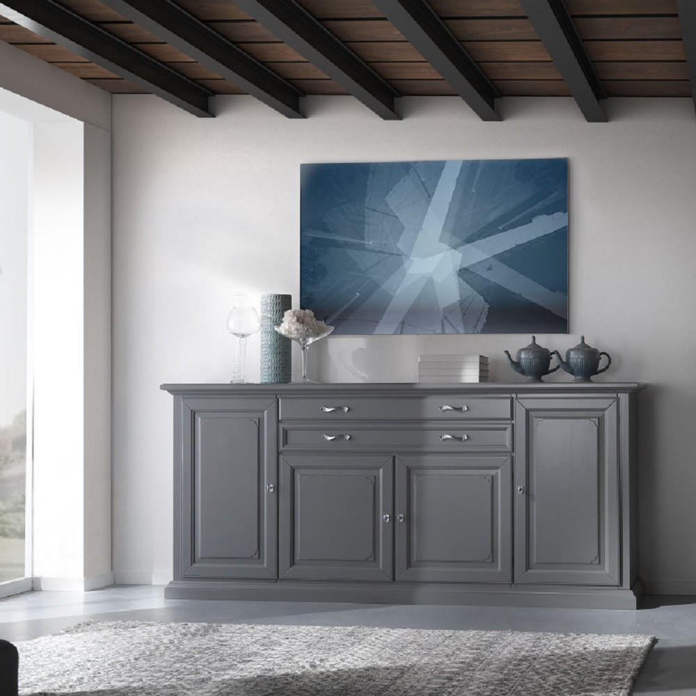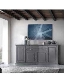 MADIA CREDENZA IN LEGNO MASSELLO 4 ANTE GRIGIO OPACO L.245 P.52 H.110