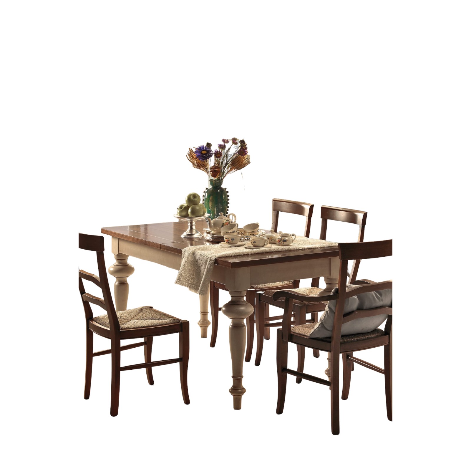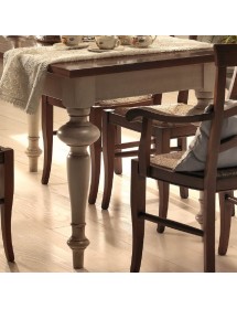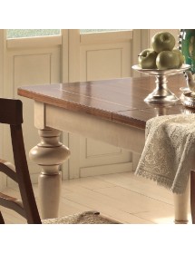 TAVOLO SHABBY ALLUNGABILE GAMBA TORNITA IN LEGNO AVORIO/NOCE L.140 P.90 H.80