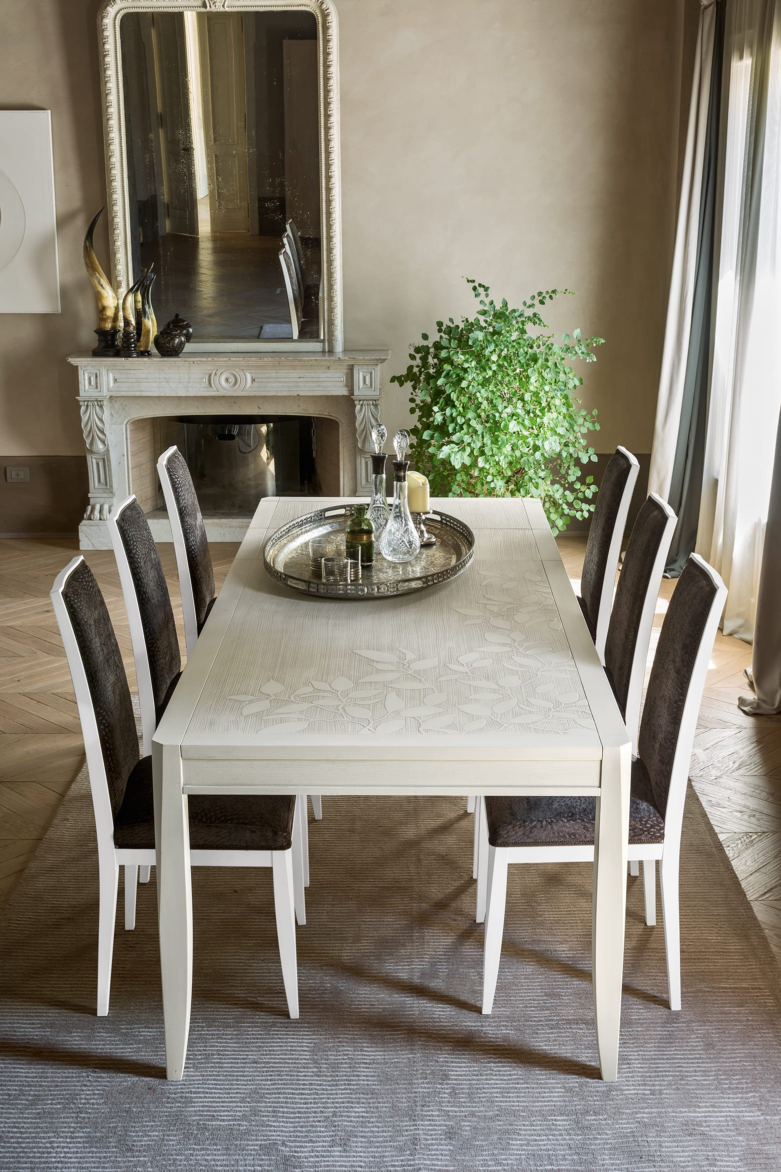 TAVOLO RETTANGOLARE ALLUNGABILE CON DECORO FOGLIA IN LEGNO L.160 P.100 H.80