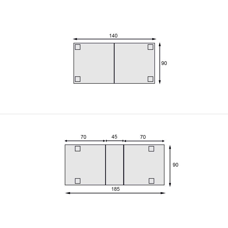 • Misura senza allunga cm 140 x 90, spazio per 6 persone.