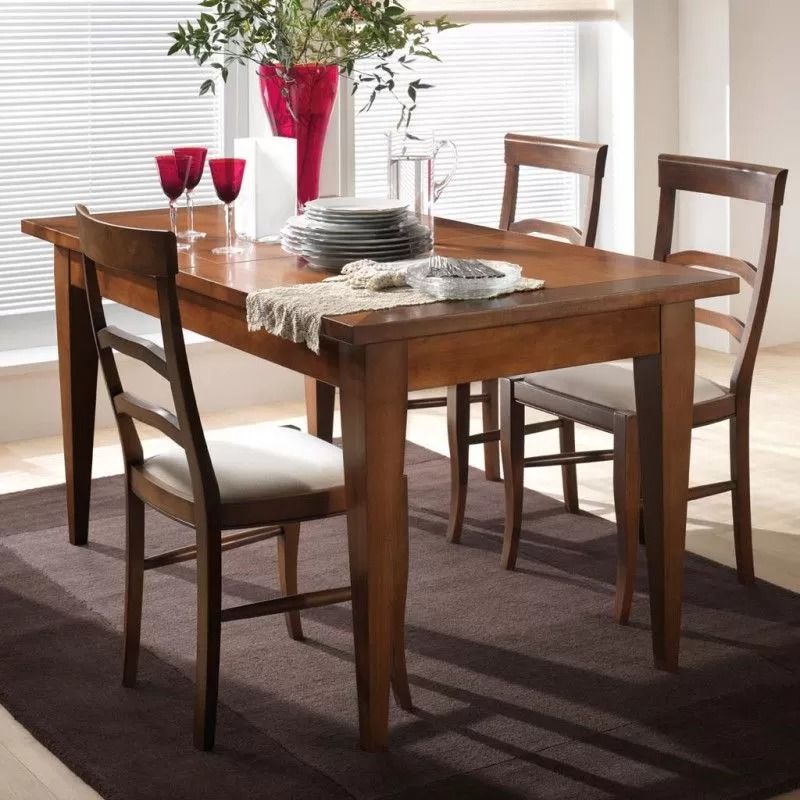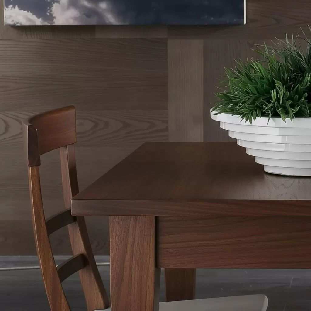 TAVOLO ALLUNGABILE GAMBA A SPILLO LEGNO MASSELLO TINTA NOCE L.140 P.90 H.80
