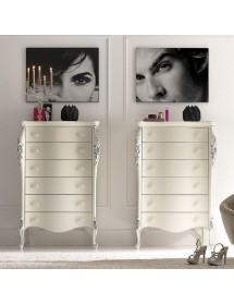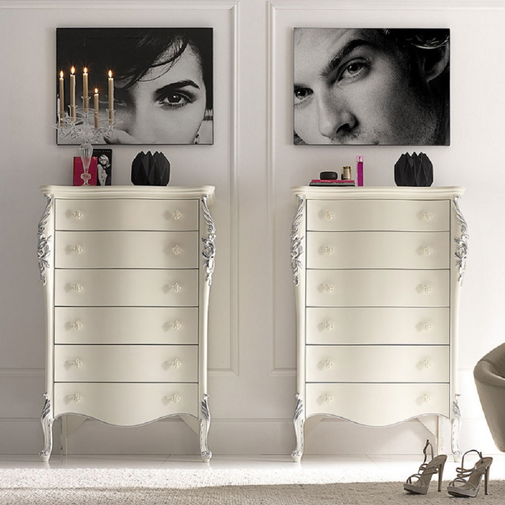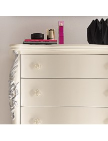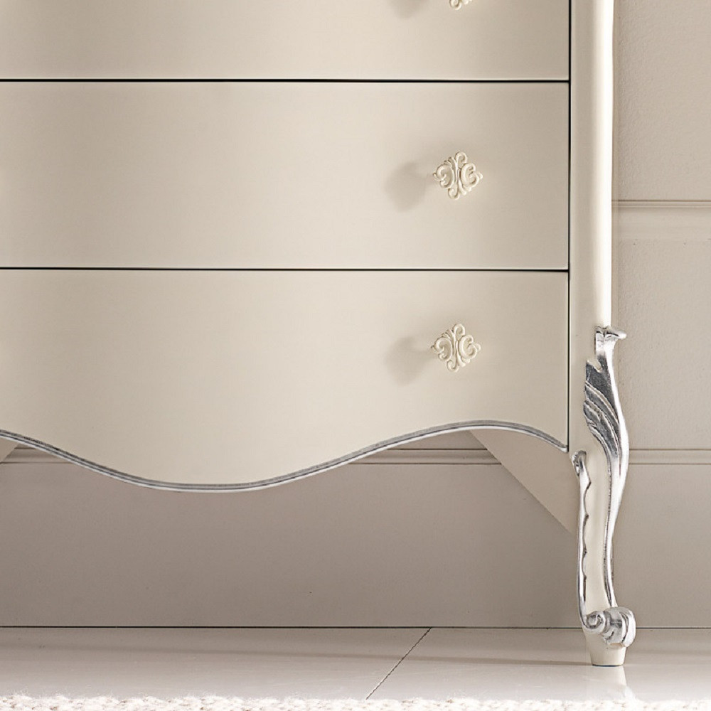 CASSETTIERA CLASSICA SAGOMATA 6 CASSETTI IN LEGNO BIANCO ARGENTO L.86 P.47 H.132