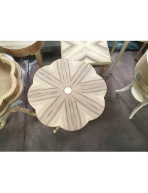 Tavolino rotondo \"Fiore\" intarsiato gambone 3 piedi grezzo D.56 H.71 (3122)