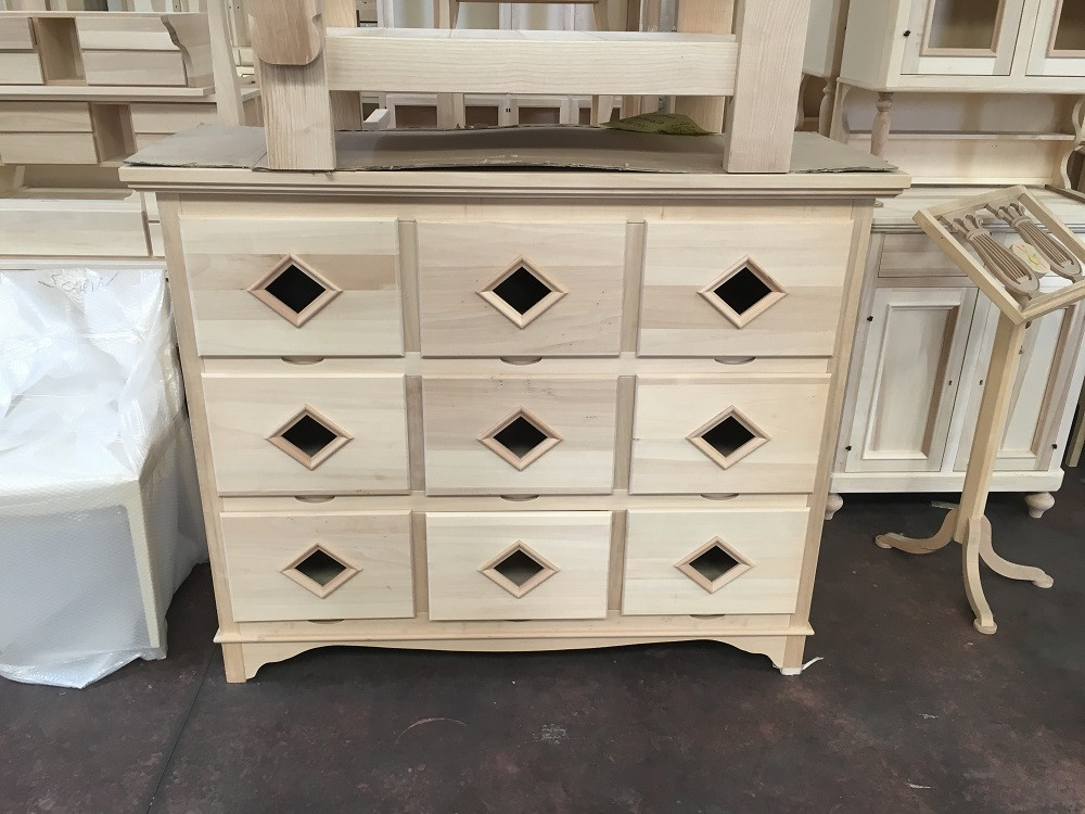 mobili grezzi artigianali, pronti per essere verniciati, laccati o decorati