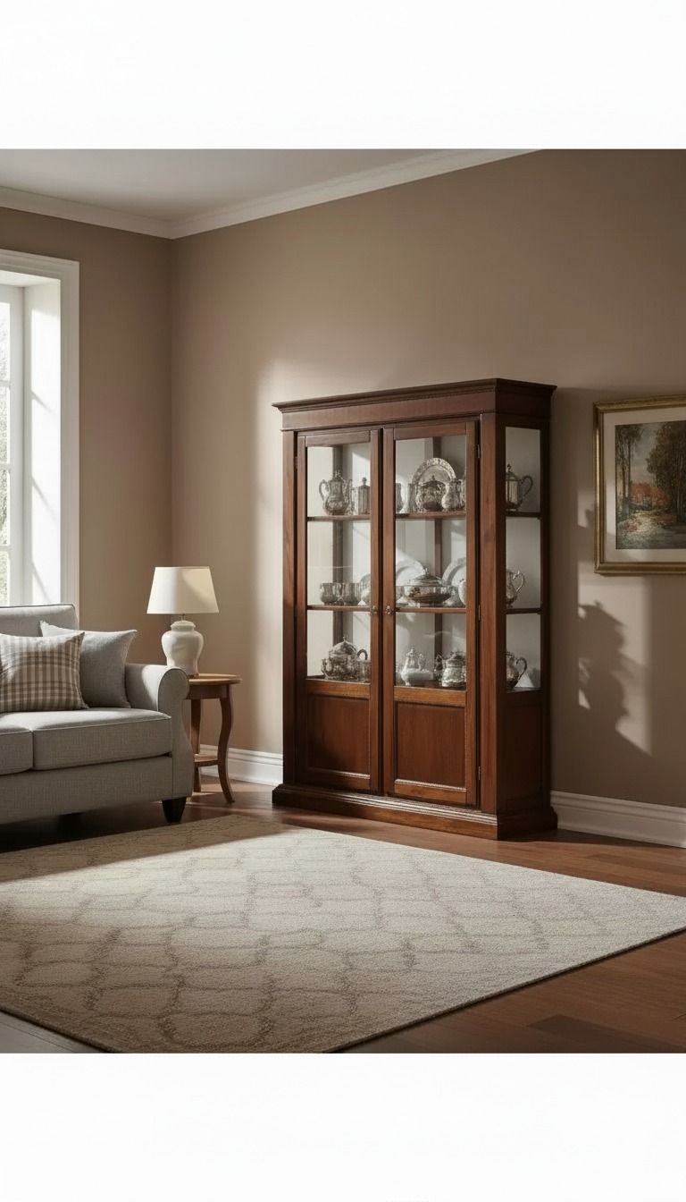 Vetrina arte povera con due ante, schienale tappezzato in tessuto bianco e ripiani in legno. Perfetta per un arredamento classico e raffinato. Ante con telaio in legno e chiusura con serratura. Le proporzioni classiche si fondono con lavorazioni e dettagli tradizionali, per creare un mobile destinato a durare per anni.