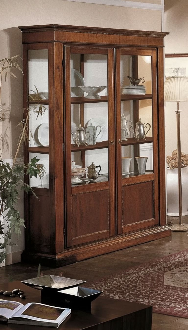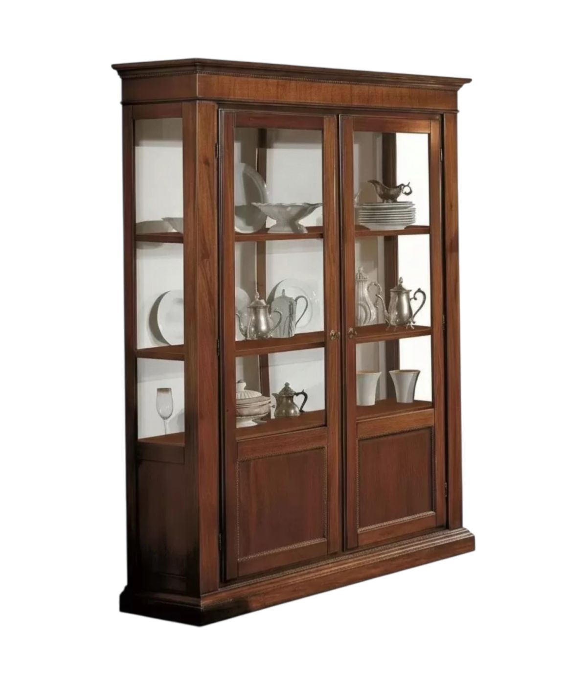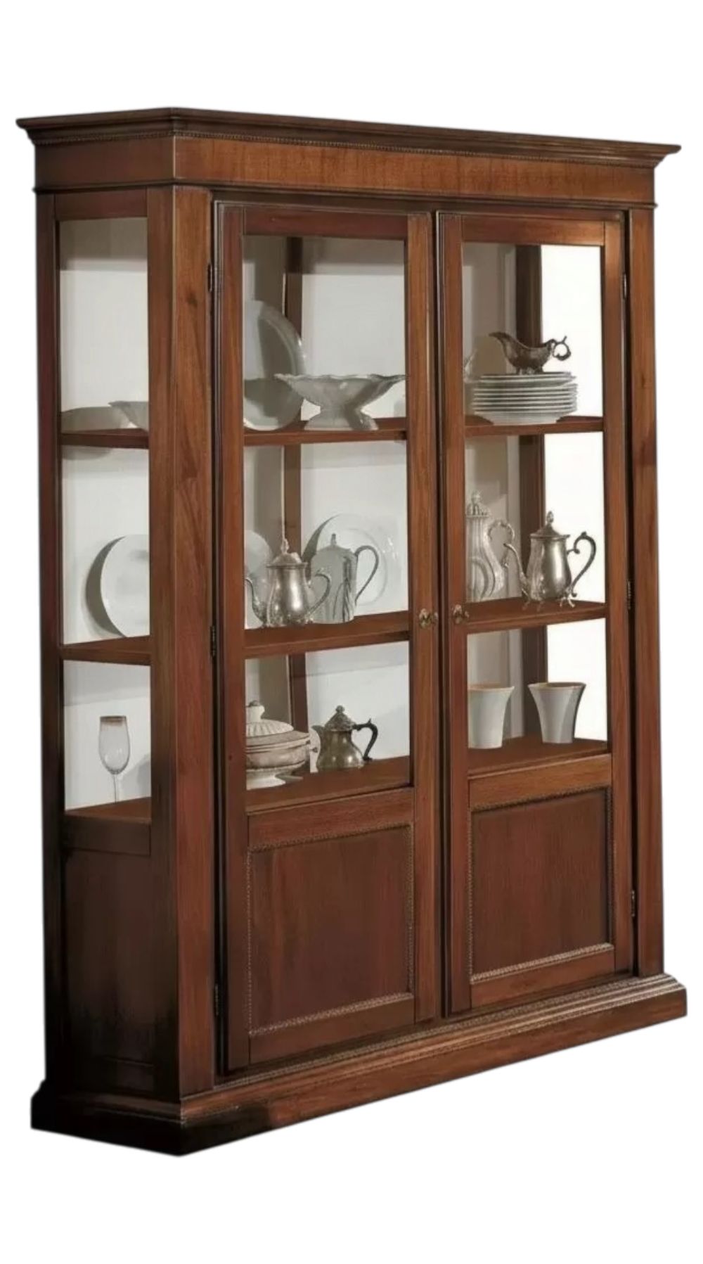 VETRINA ARTE POVERA 2 PORTE IN LEGNO TINTA NOCE L.160 P.48 H.218