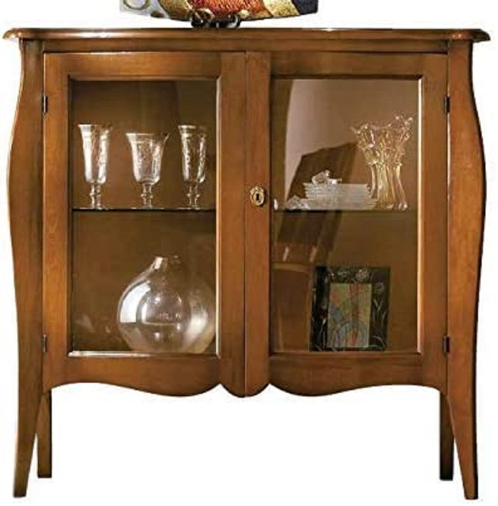VETRINA IN LEGNO ARTE POVERA 2 PORTE TINTA NOCE 107X46X102