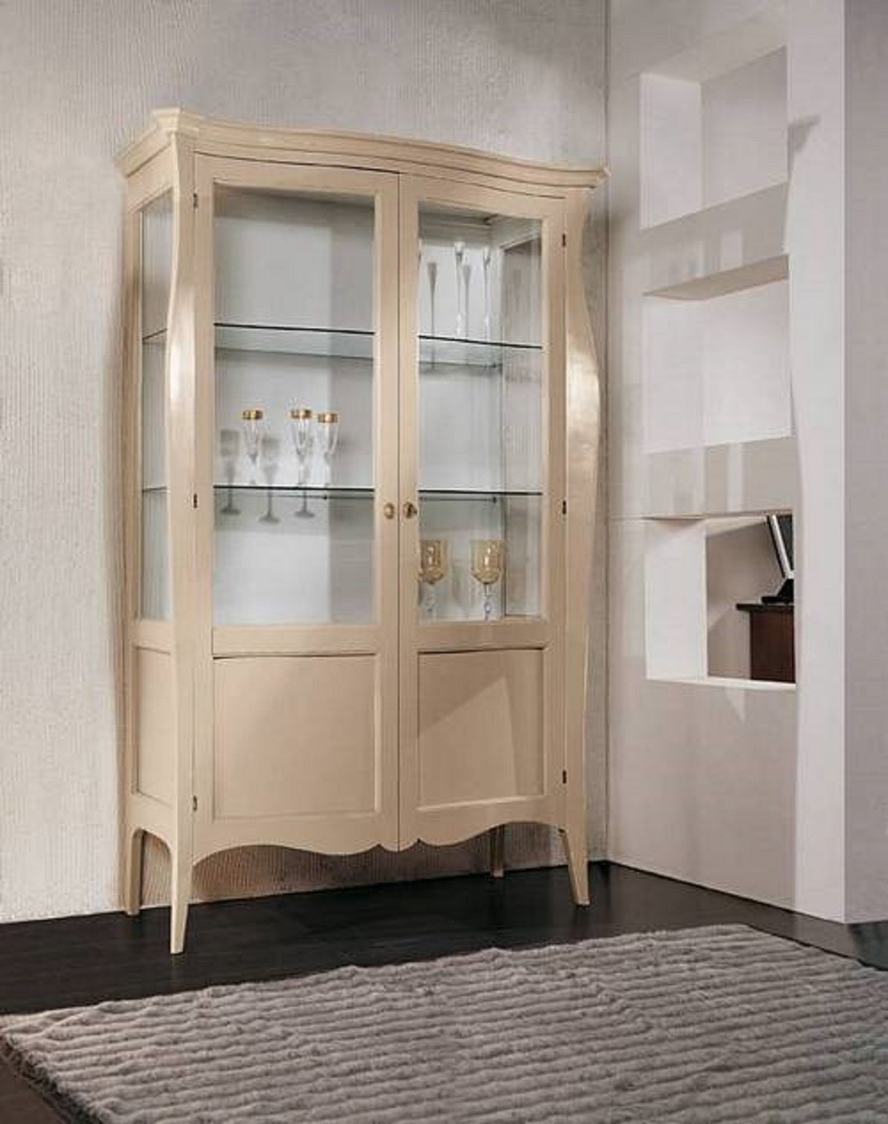 VETRINA CLASSICA IN LEGNO 2 PORTE AVORIO 130X50X200
