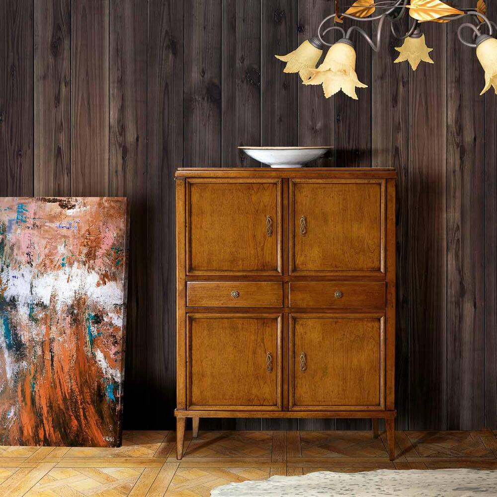 MADIA DISPENSA CLASSICA IN LEGNO 4 PORTE 2 CASSETTI LEGNO GREZZO L.100 P.43 H.130