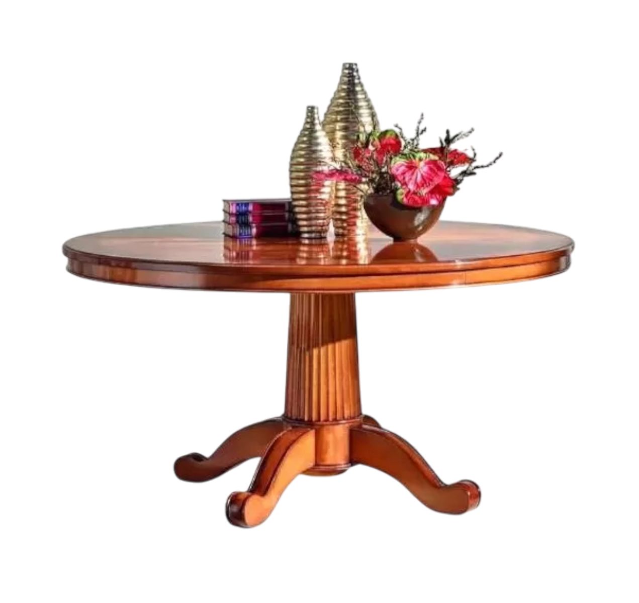 Tavolo Rotondo Classico Legno Intarsio Tinta Noce 140/150/160 Cm